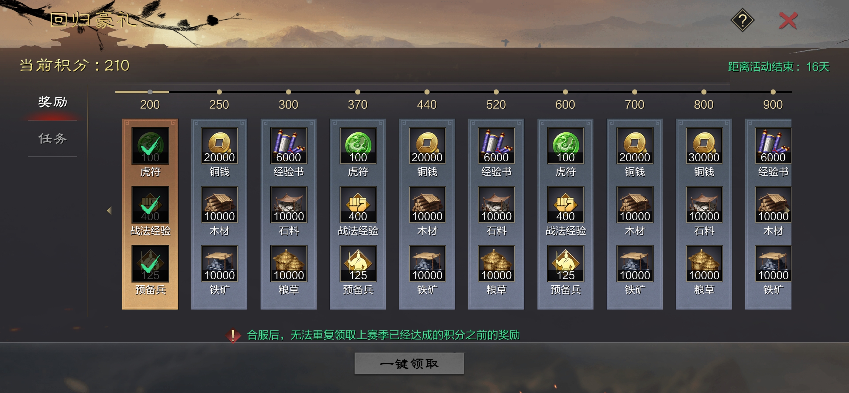 征服赛季,核心基本都有,宝物可以卖