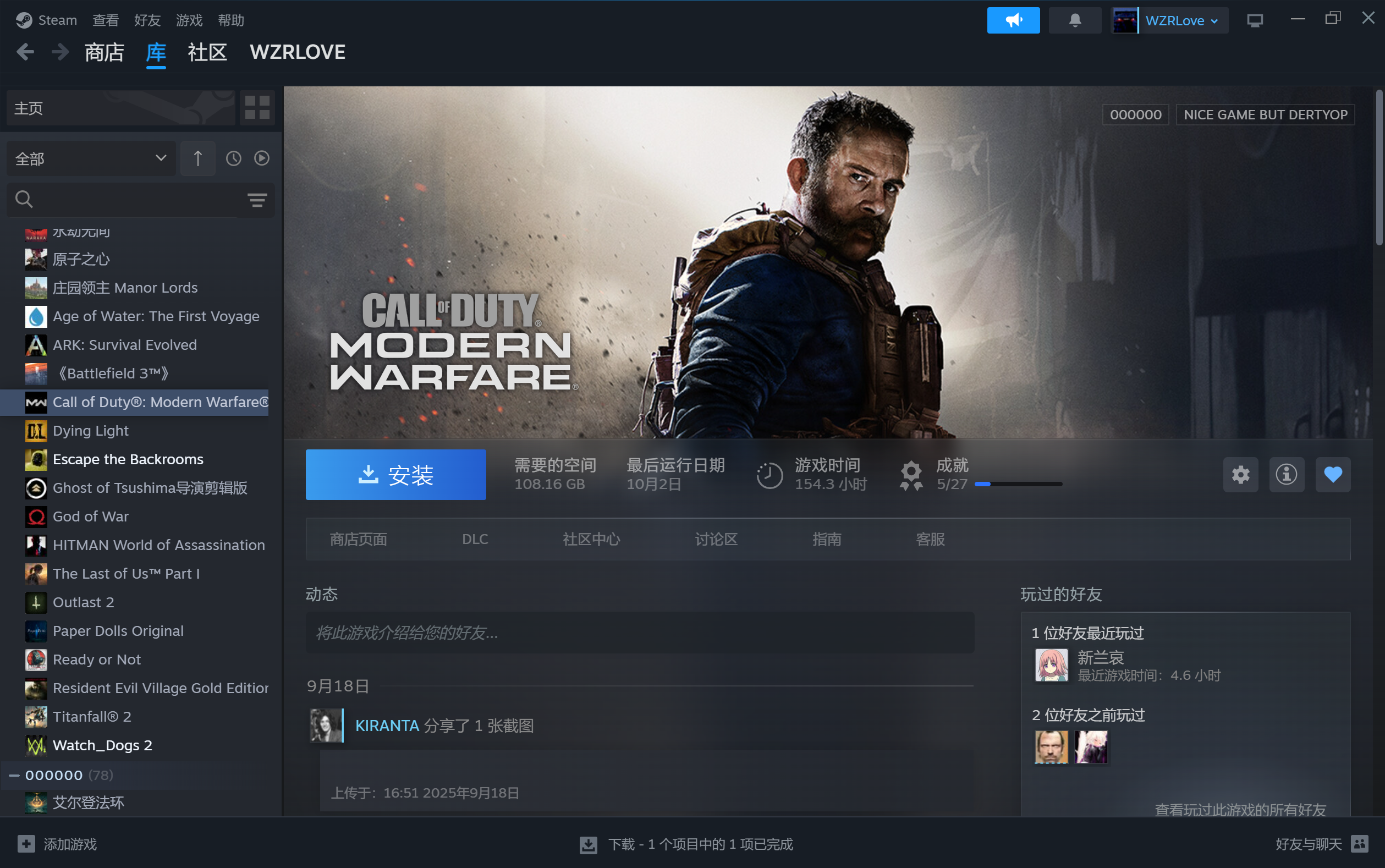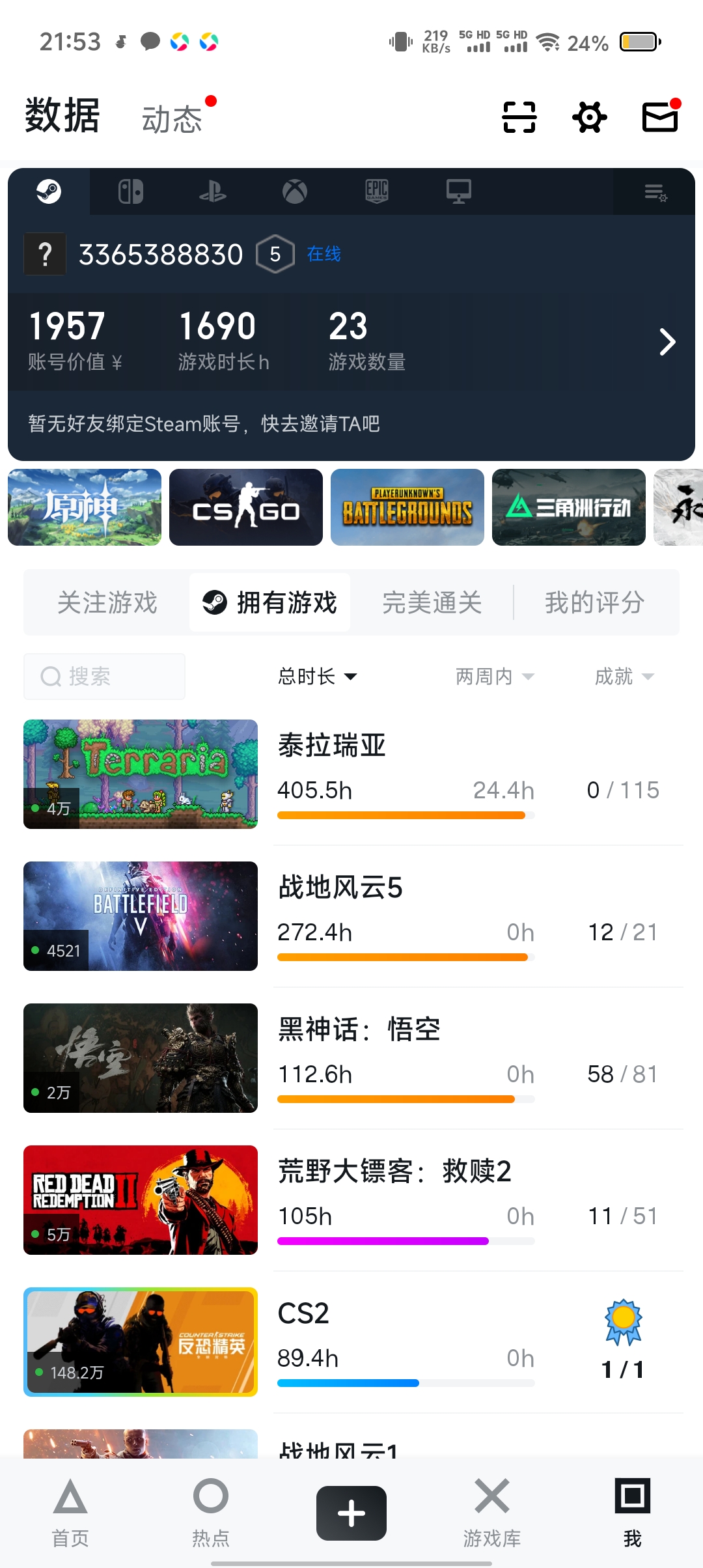 自用3年Steam账号和epic近3年的游戏都有领共110多款游戏加上epic近400款