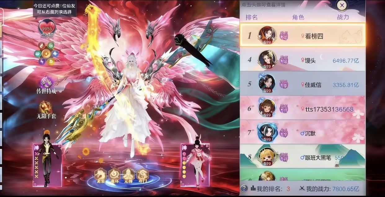 1.2万亿排行第7,龙魂10级双龍环绕,3个大翅膀2个龙坐骑,神界有坑区里活跃有大腿抱养老号!