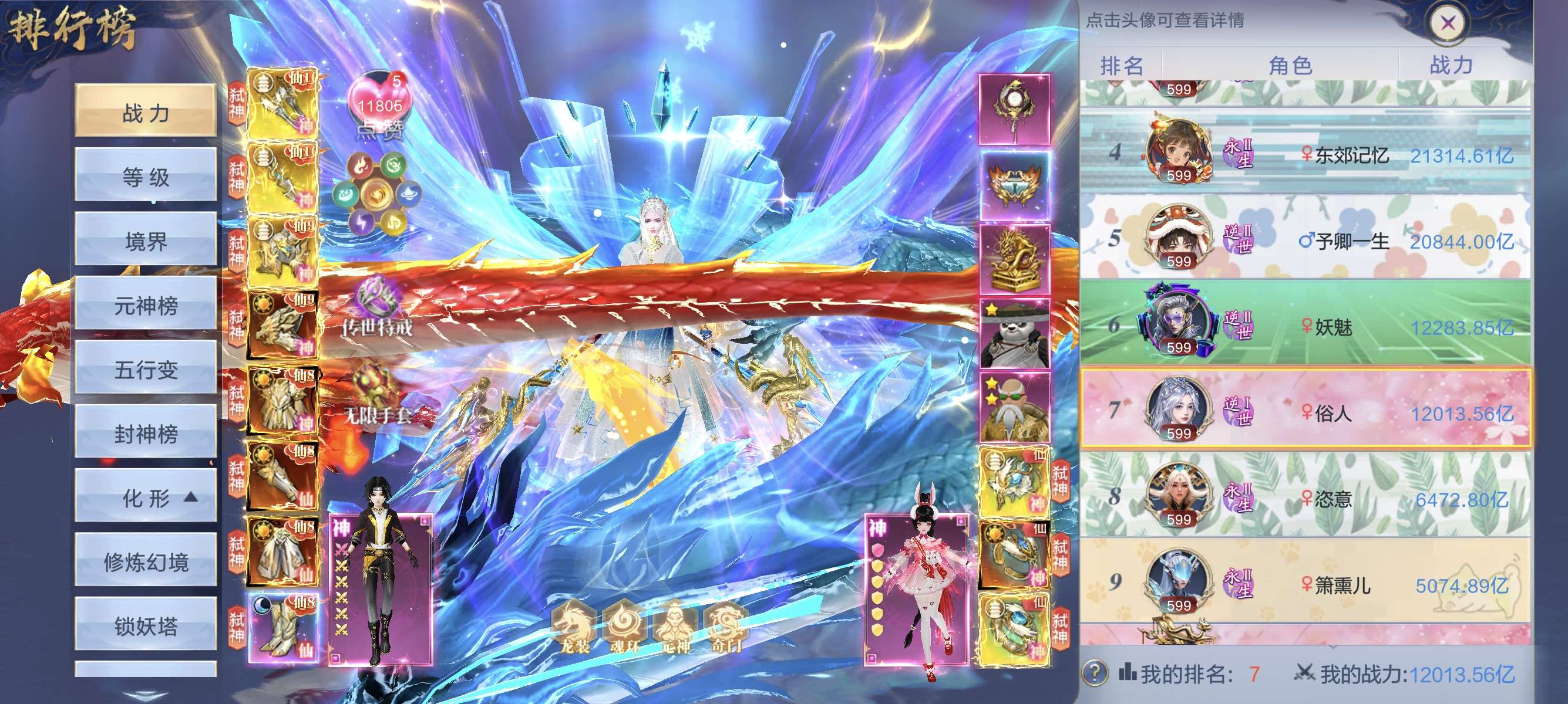 战力11亿,开区没多久,20倍返利服的号,每次充值享受20倍返利,每天登录送10000仙玉