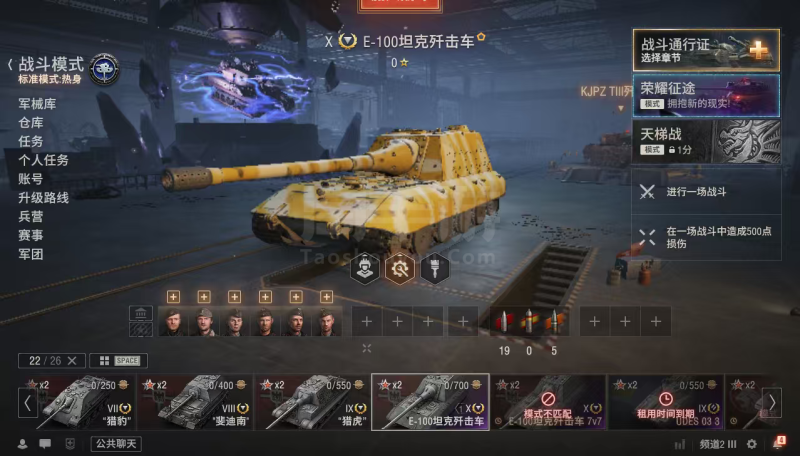 坦克世界【端游】q007级坦克世界帐号4005、E100坦克歼击车600万银币