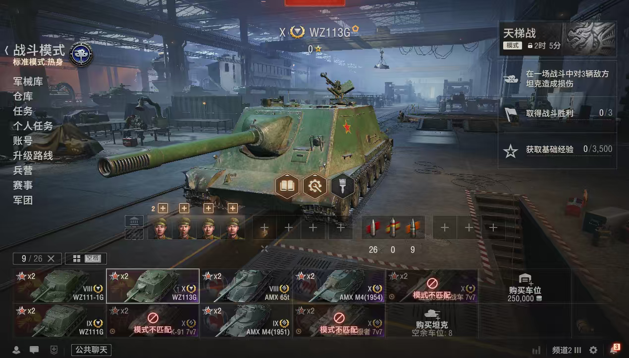 z897坦克世界账号WZ113G1954债券35500银币2300万金币2500全局25万