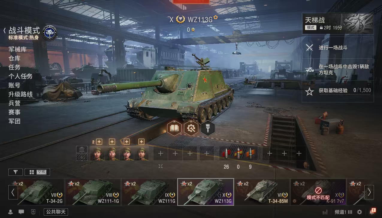 z912坦克世界账号WZ113G超级征服者T34债券36000银币2300万全局25万金币2500