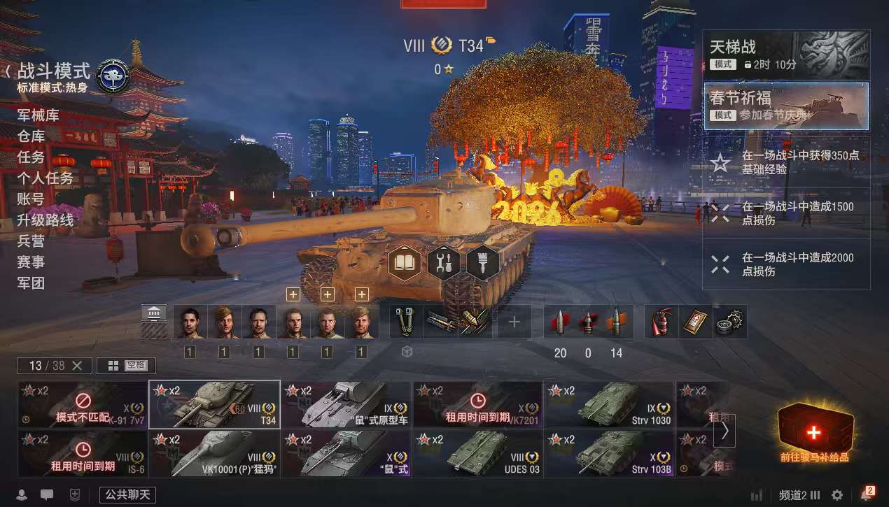 坦克世界账号鼠式、Strv103B T34银币3000万、债券35500、金币2500
