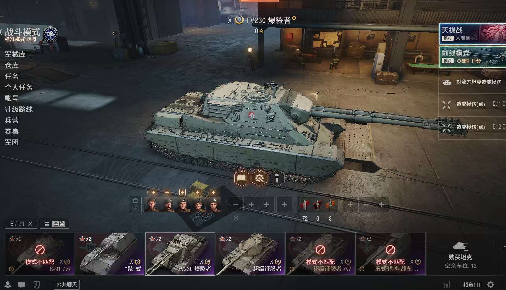 10级车有十几辆,9级车和8级的95或,is-6,还有,其他几辆