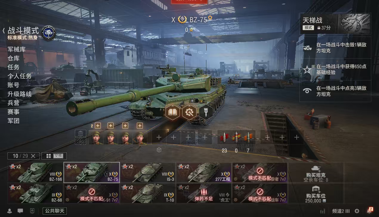 z884坦克世界账号277工程BZ75债券31600银币2300万金币2500
