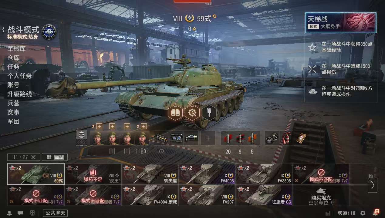 z885坦克世界账号59式4005征服者GC债券38500银币2400万金币2500