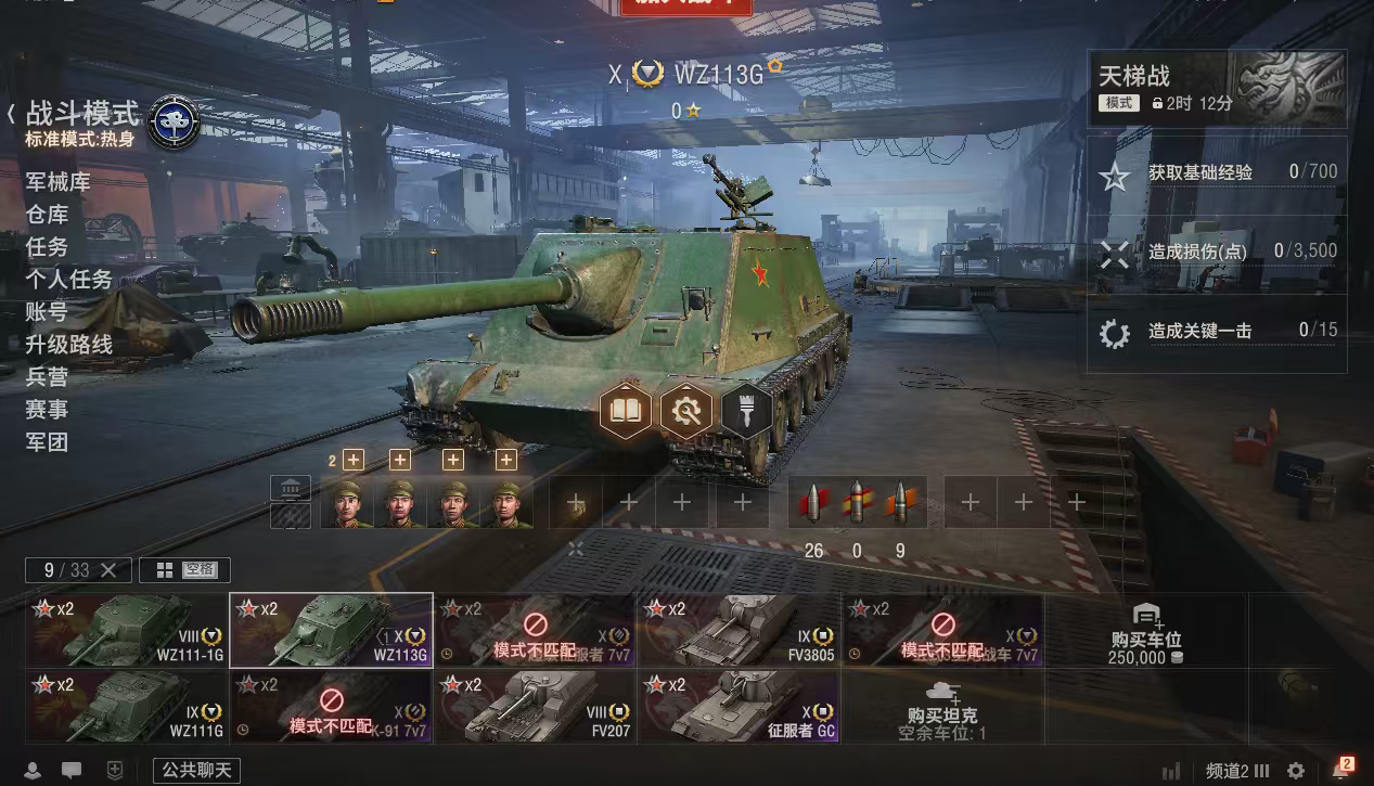 z889坦克世界账号WZ113GVz55债券37500银币2600万金币2500全局26万