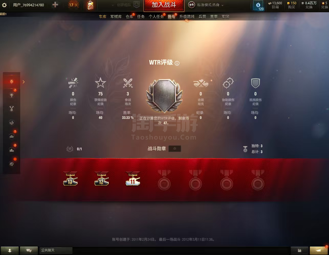 z630坦克世界账号债券28500(可换2辆10金)1840万银