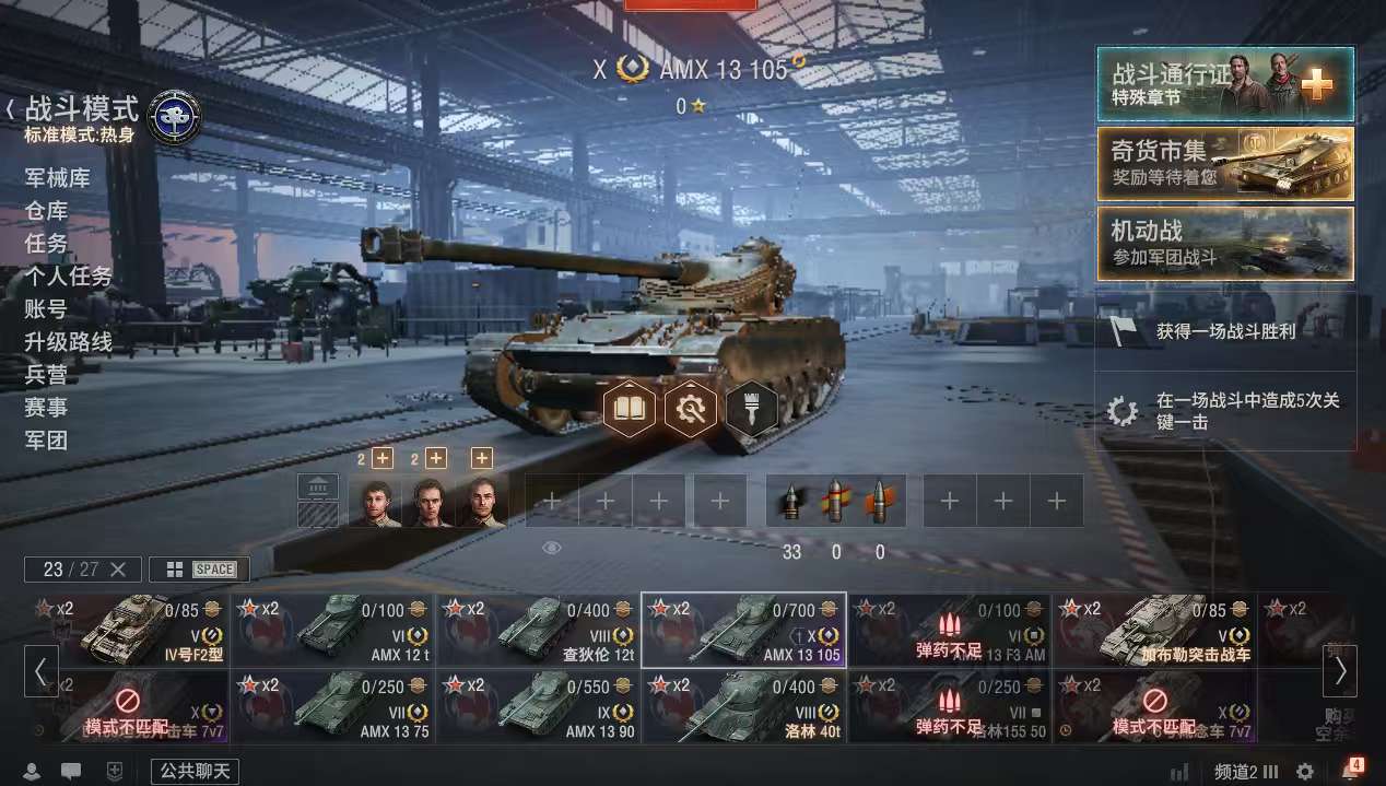 z801坦克世界账号AMX13105洛林40t59式银币2600万债券26000全局25万