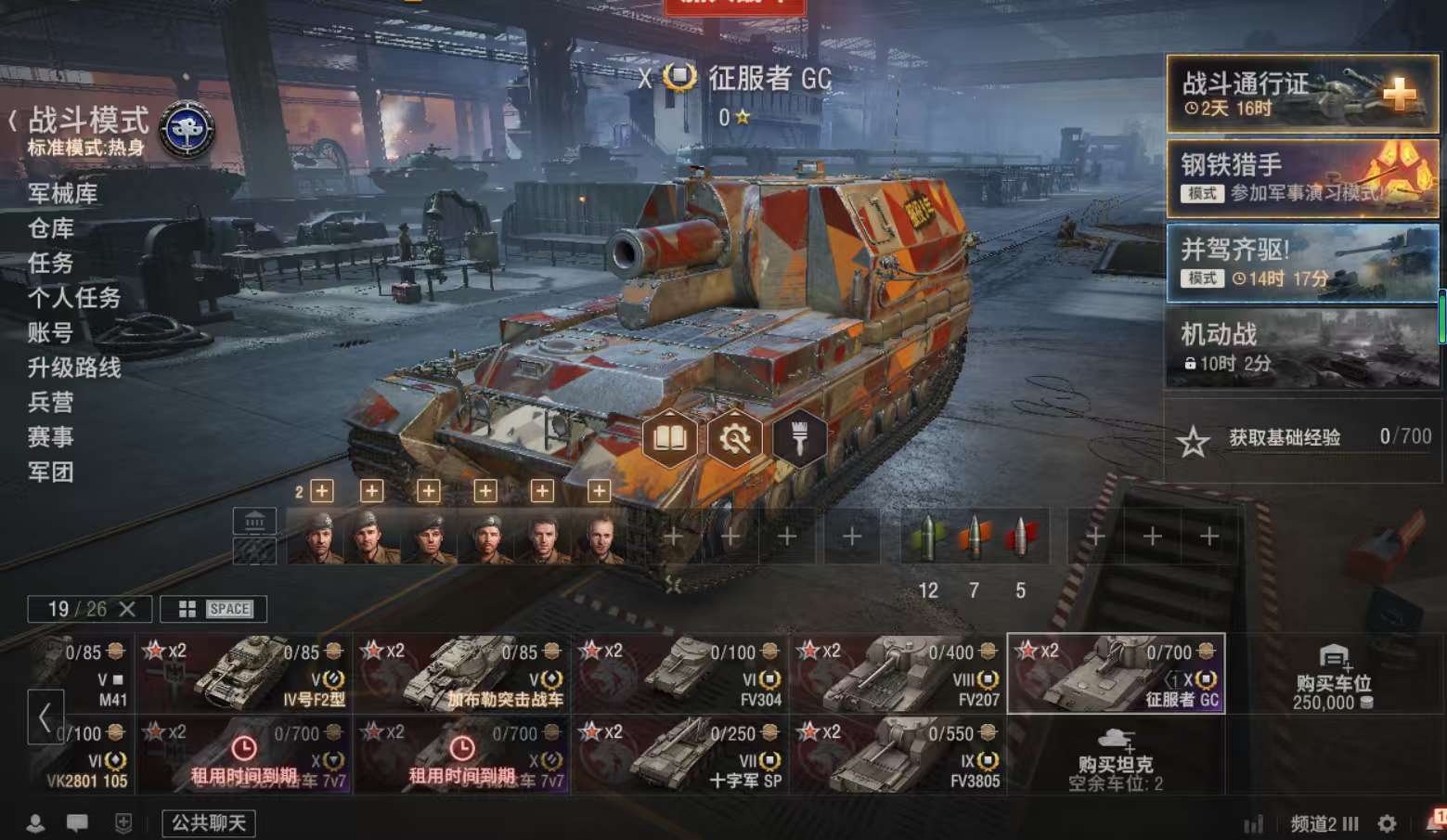 z856坦克世界账号征服者GC银币2200万债券31000全局25万金币2500