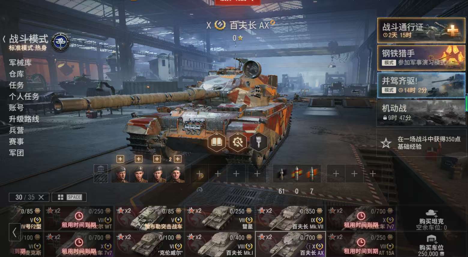 z858坦克世界账号百夫长AX银币2100万债券30000全局25万金币2500