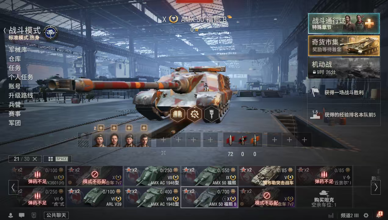 z808坦克世界账号AMX50福熙B银币2100万债券31000全局25万金币2500