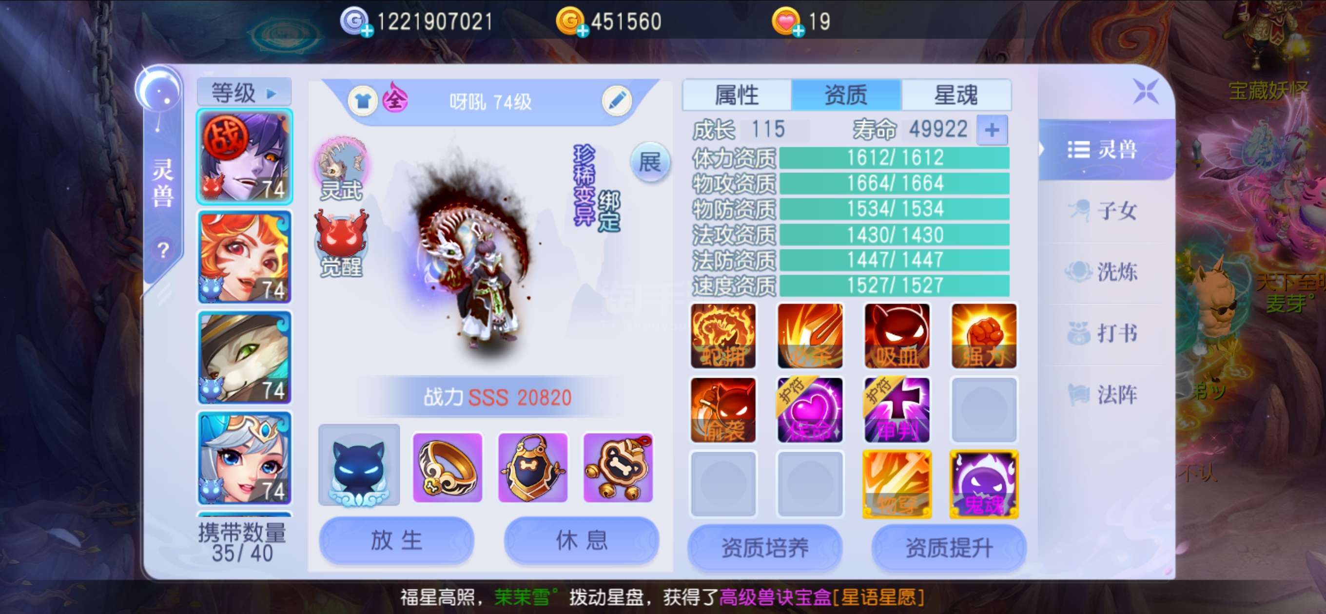 安卓官方 69极品号,便宜出手 宠物介绍:十几只成品宠物 装备介绍:基本全满 战斗力:33000