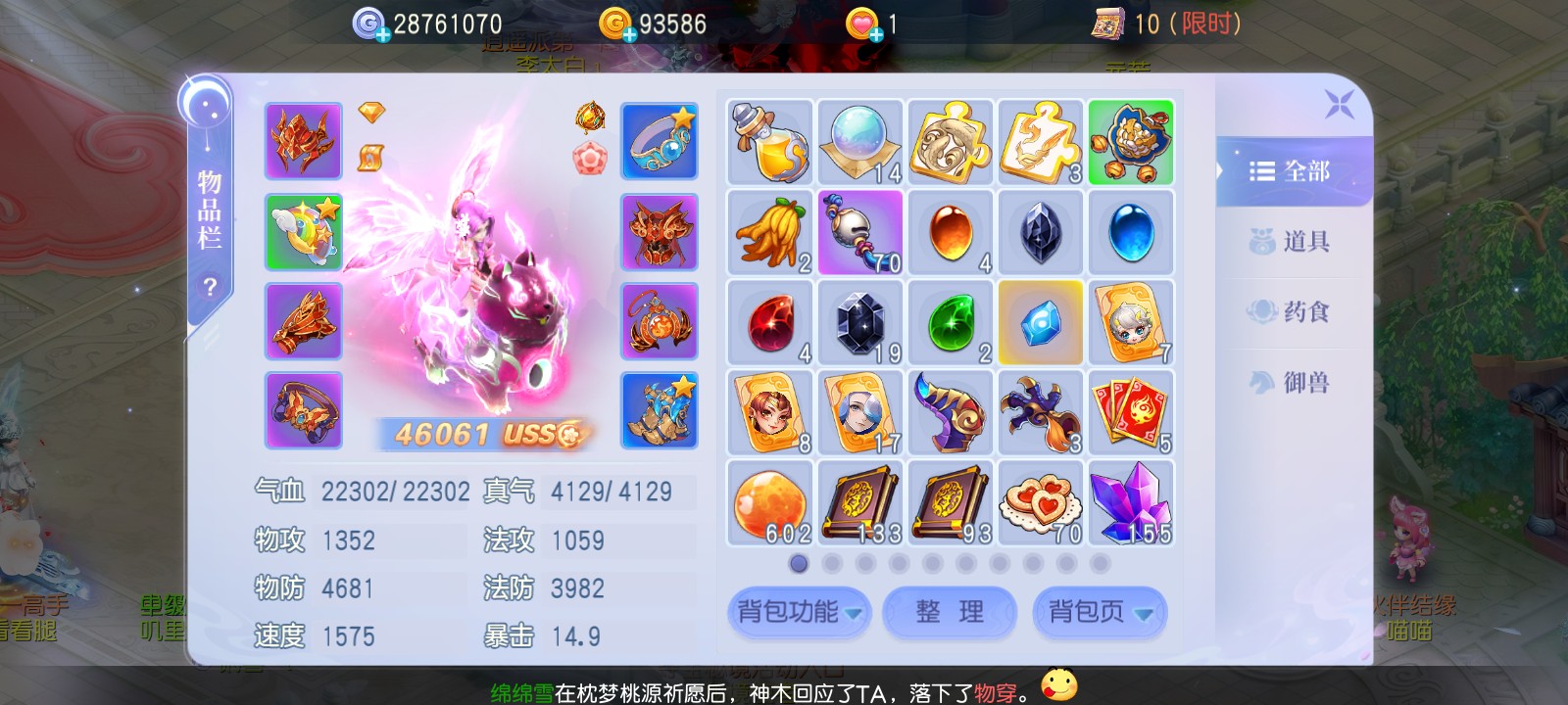 安卓官方 69极品号,便宜出手 宠物介绍:十几只成品宠物 装备介绍:基本全满 战斗力:33000