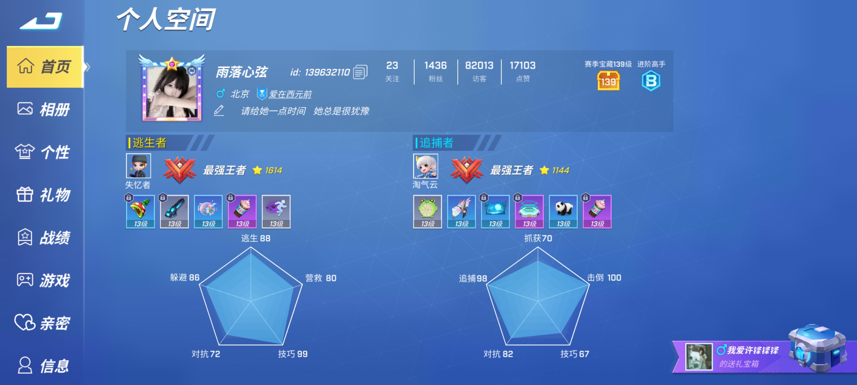 逃跑吧少年千星号 210 万个性值,多绝版皮肤号,有绝版狐狸冰淇淋等等