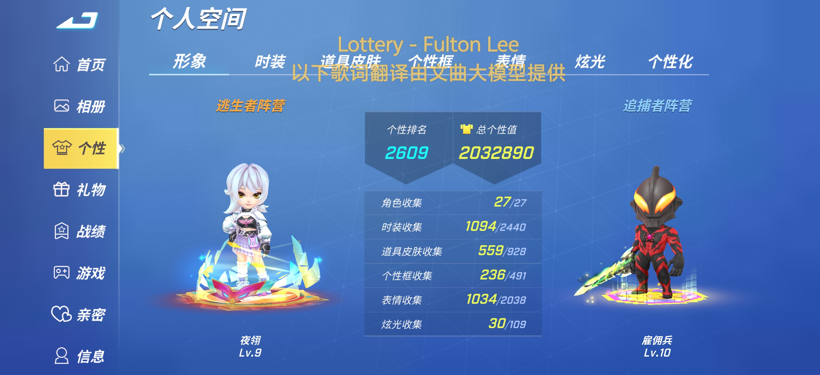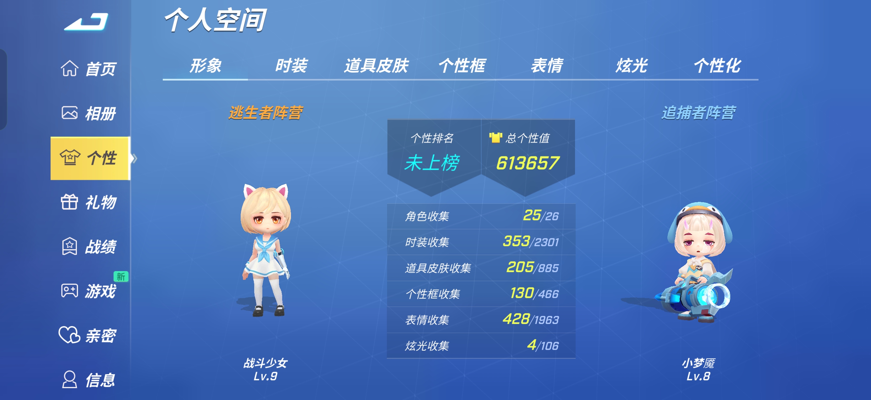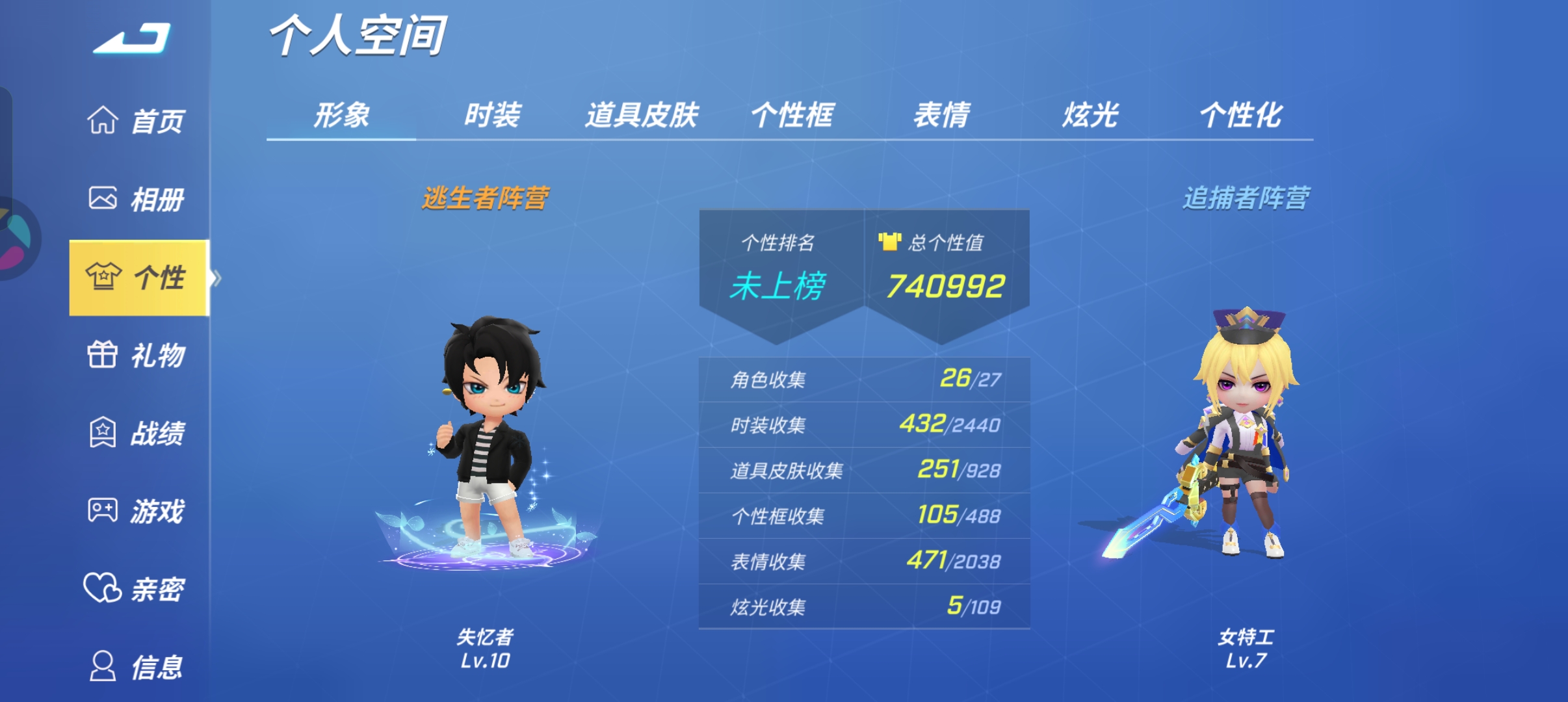 逃跑吧少年千星号 210 万个性值,多绝版皮肤号,有绝版狐狸冰淇淋等等