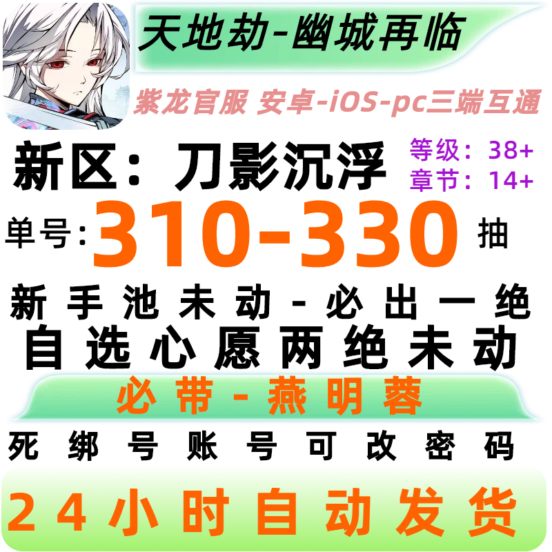 安卓苹果互通新区幽寰紫曜300抽~死绑号可改密