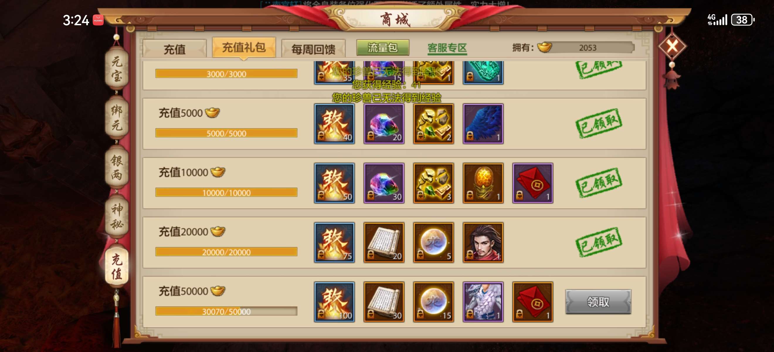 累充26万多有记录,六重楼4鬼,装备各种橙色极品,慢慢养成