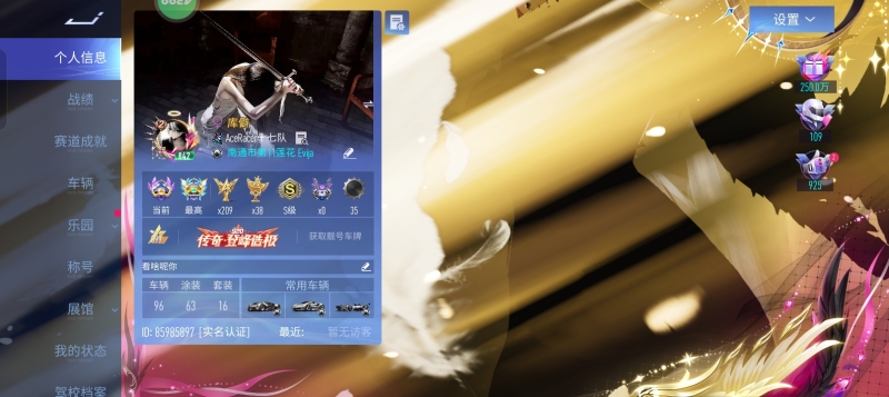 王牌竞速【安卓vivo】1122级 贵9 S级老号 认证资料可改
