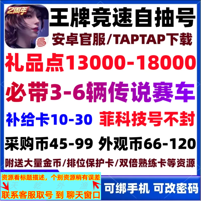 3阶天女+2阶蛇女+柯尼塞格one1皮+珍宝阁塞纳+11氪金车,4月16日换绑有冷却期