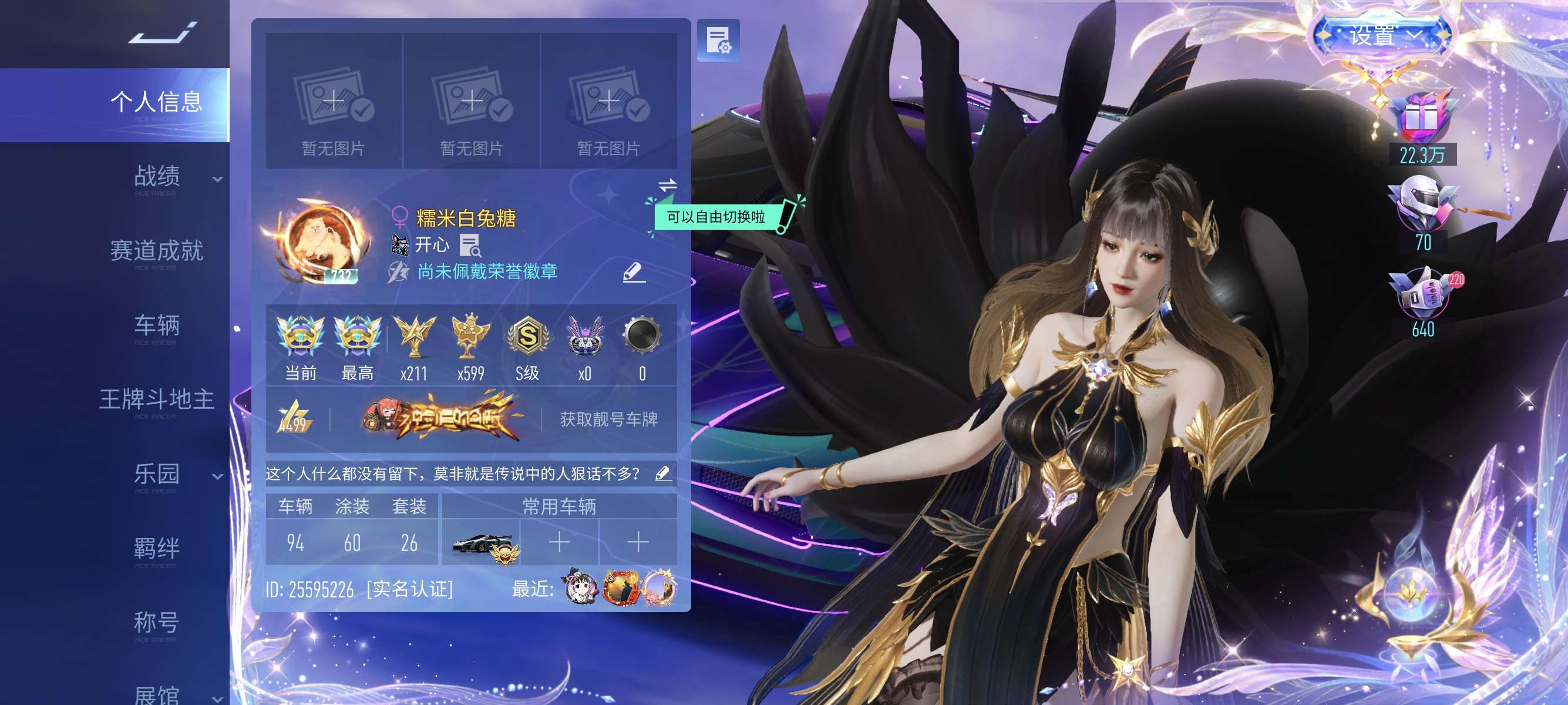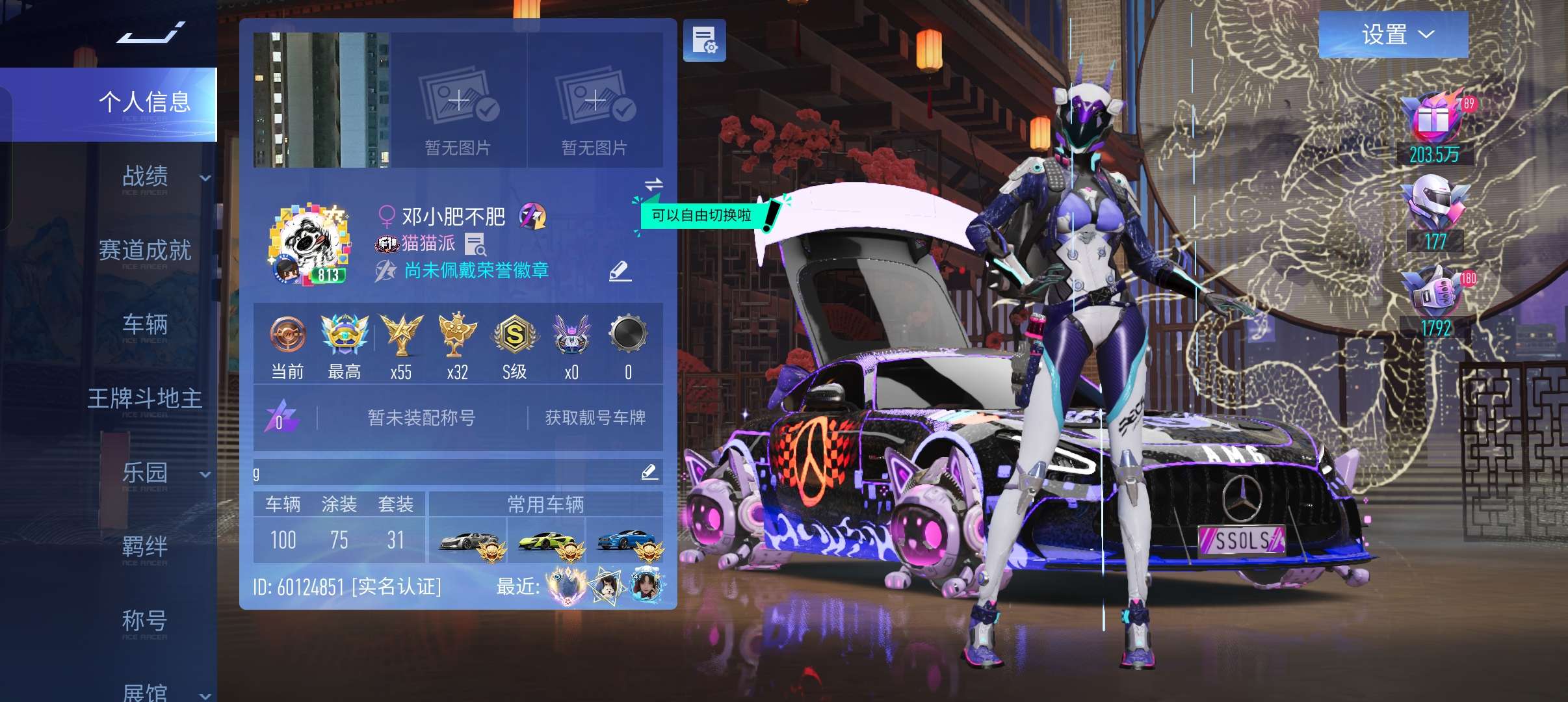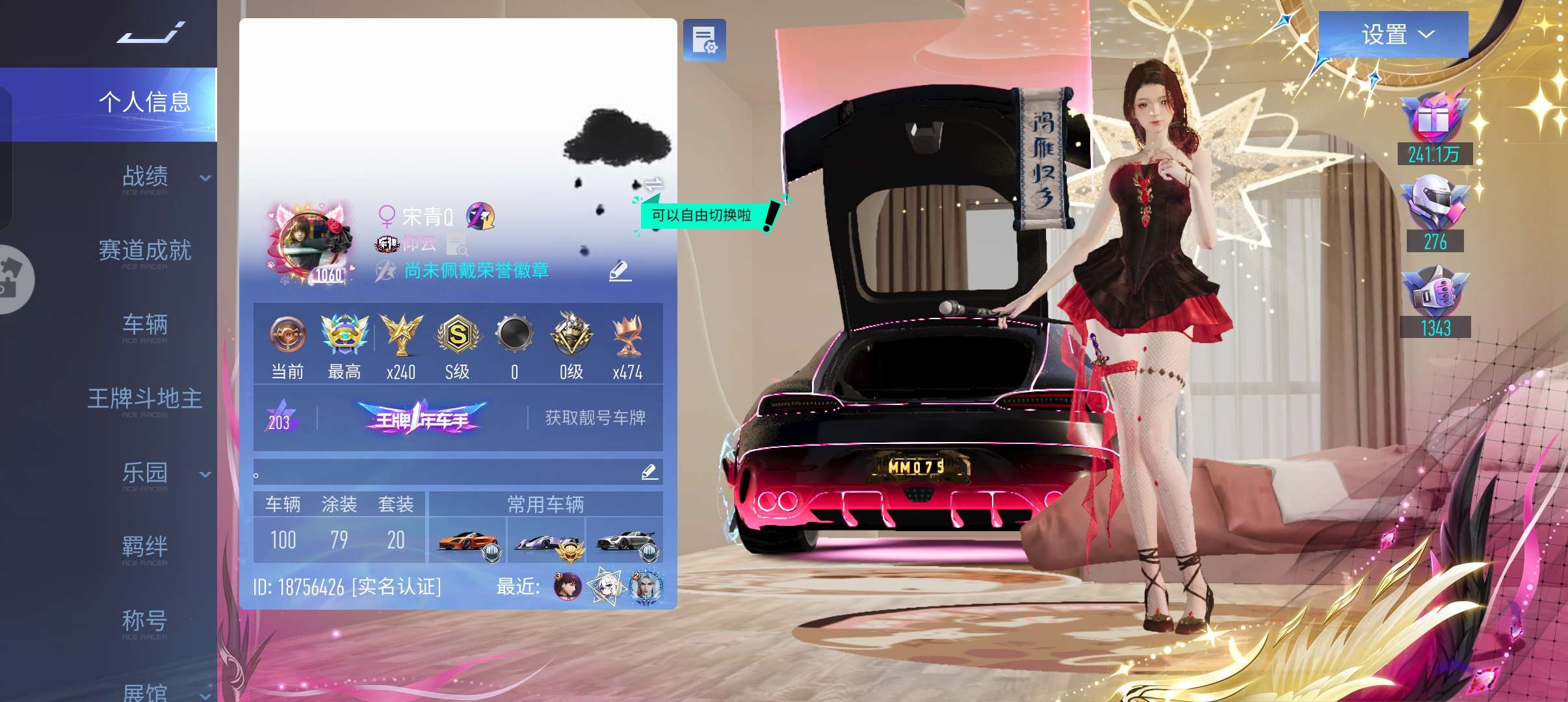 王牌竞速华为服 100辆车是真够玩 Helloky操作台 猫女时装也全都有 车皮多 号上资源丰富 直