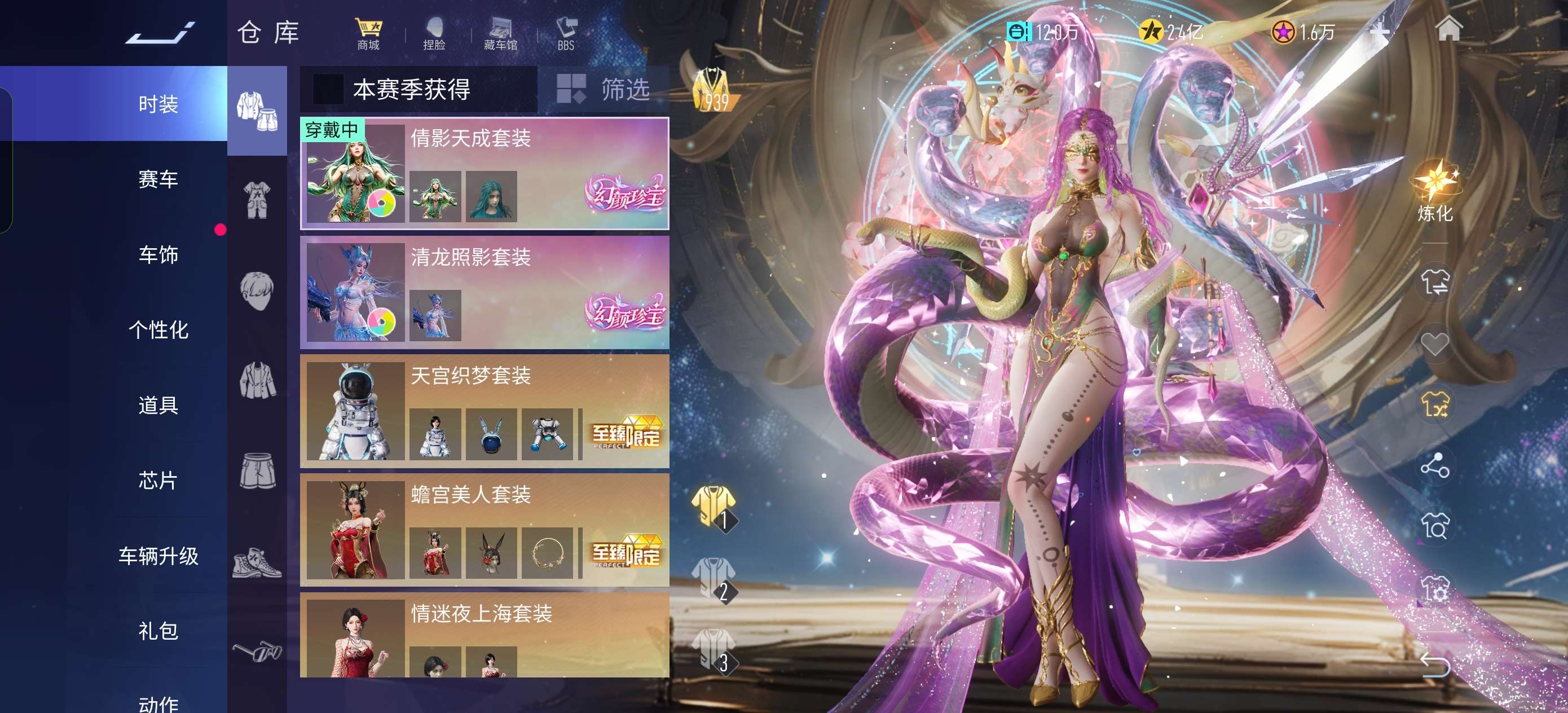 龙女2词条蛇女3词条,时尚节门票1,外观兑换币400+,精粹2500+,纪念币1.6w+