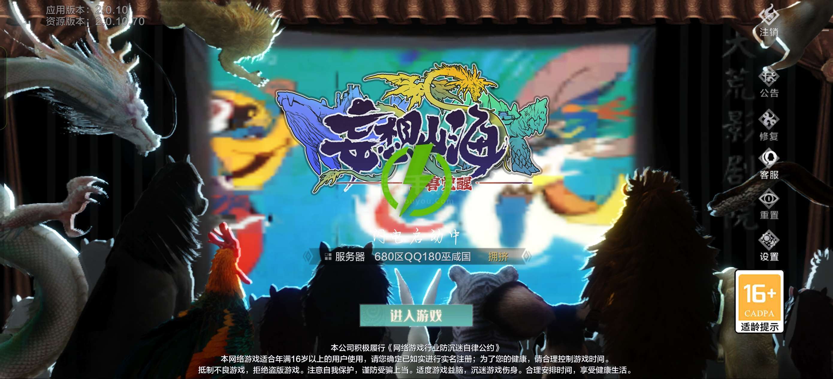 11万战力,7个五万年宠物,(狴犴 螭吻 睚眦 白泽 貔貅 霸下 飞廉)侍从兔媛媛,风元素2900攻
