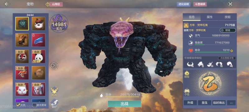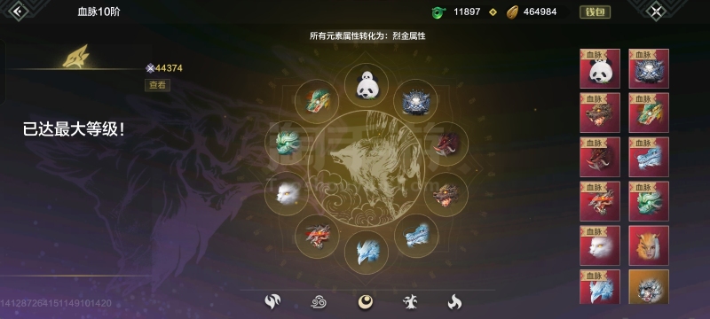 妄想山海【安卓QQ】11万战力,5个五万年宠物,睚眦 熊猫 陛犴 貔貅 穷奇都是五万年,侍从金刚鹦鹉,走金元素