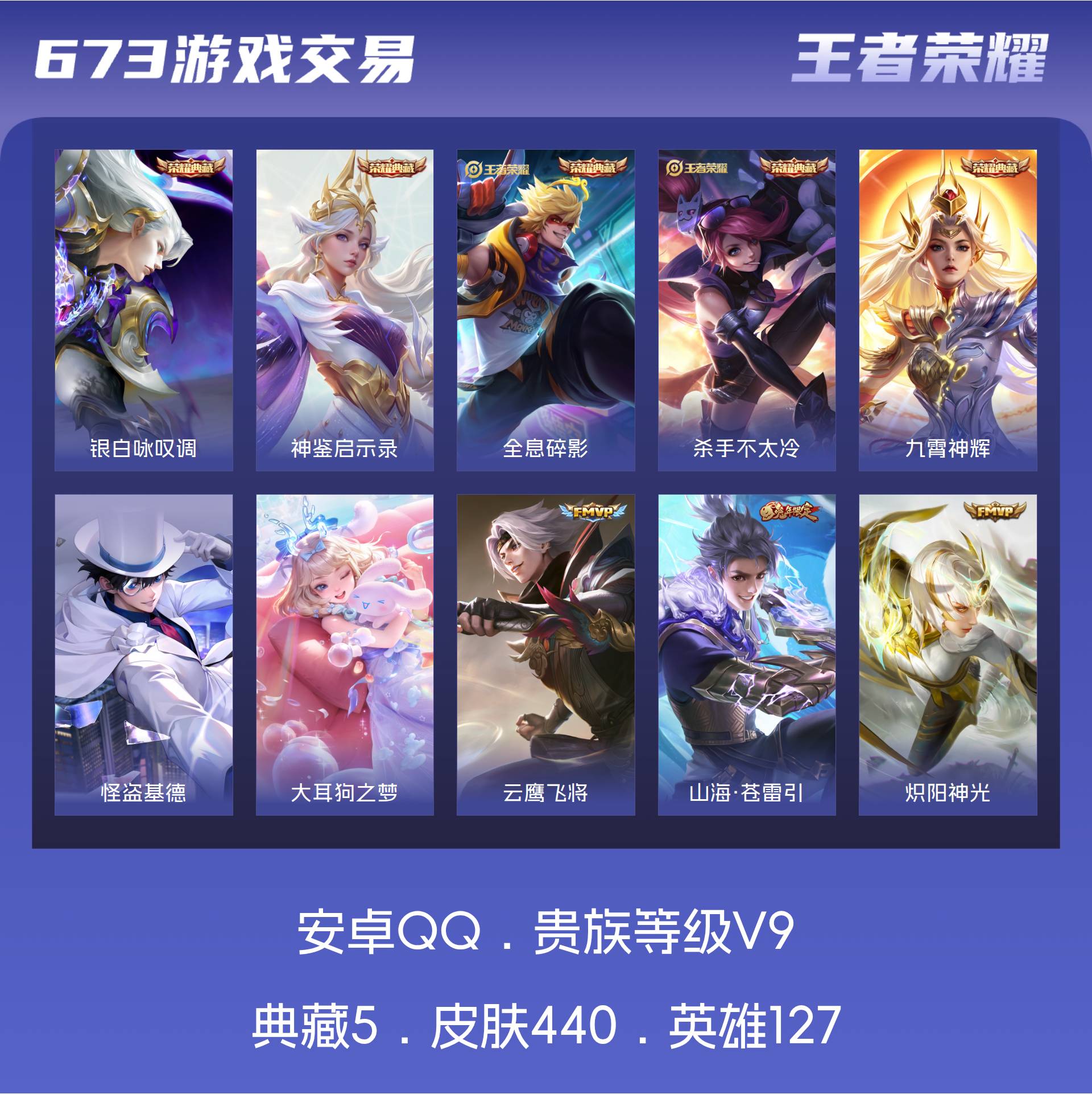 安卓QQ-可二次-皮肤440 英雄127 荣耀典藏5 珍品传说2 传说35-