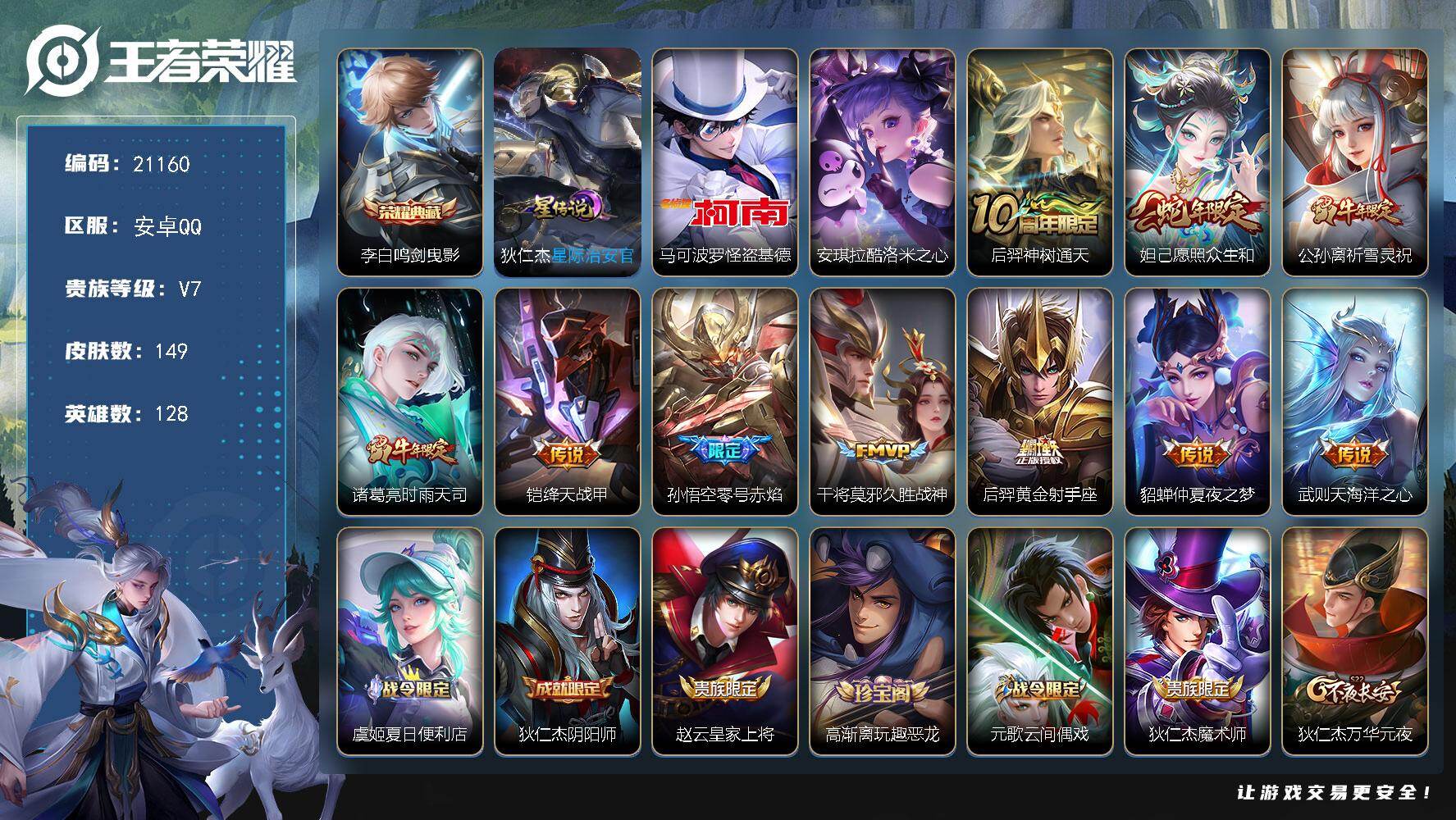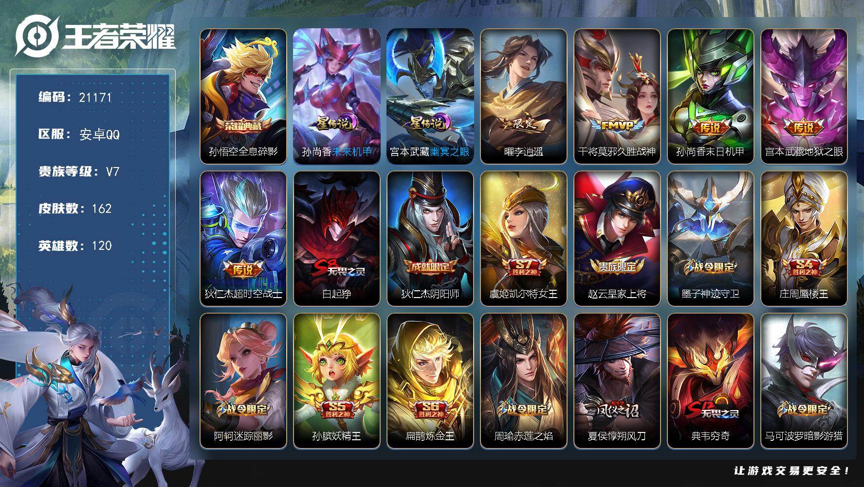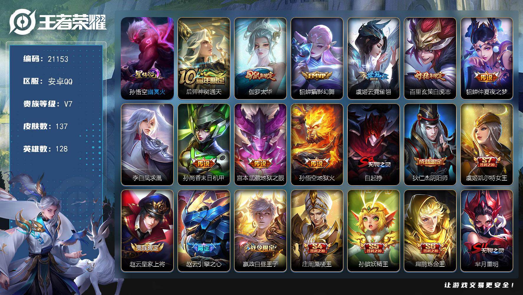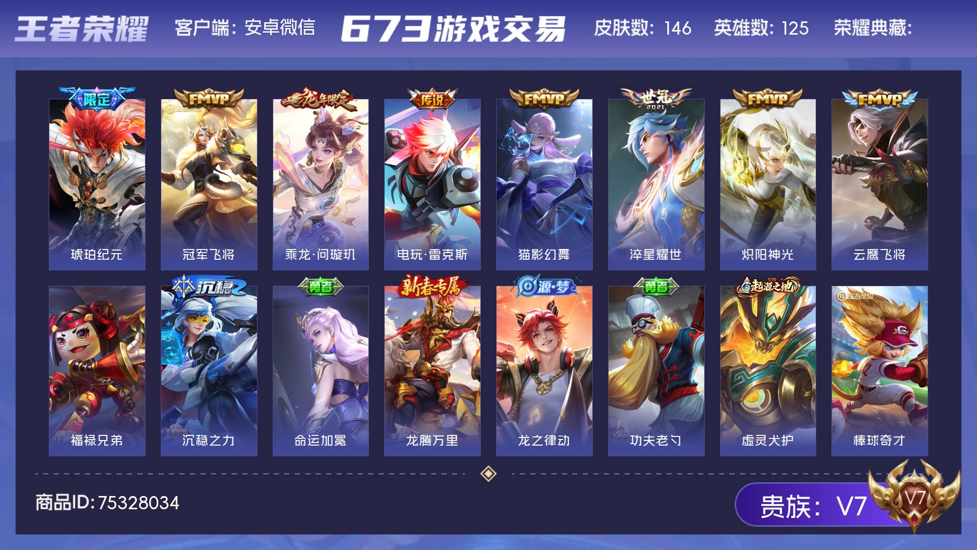 V7 皮肤146 英雄125 永恒钻石 传说8 其他皮肤143