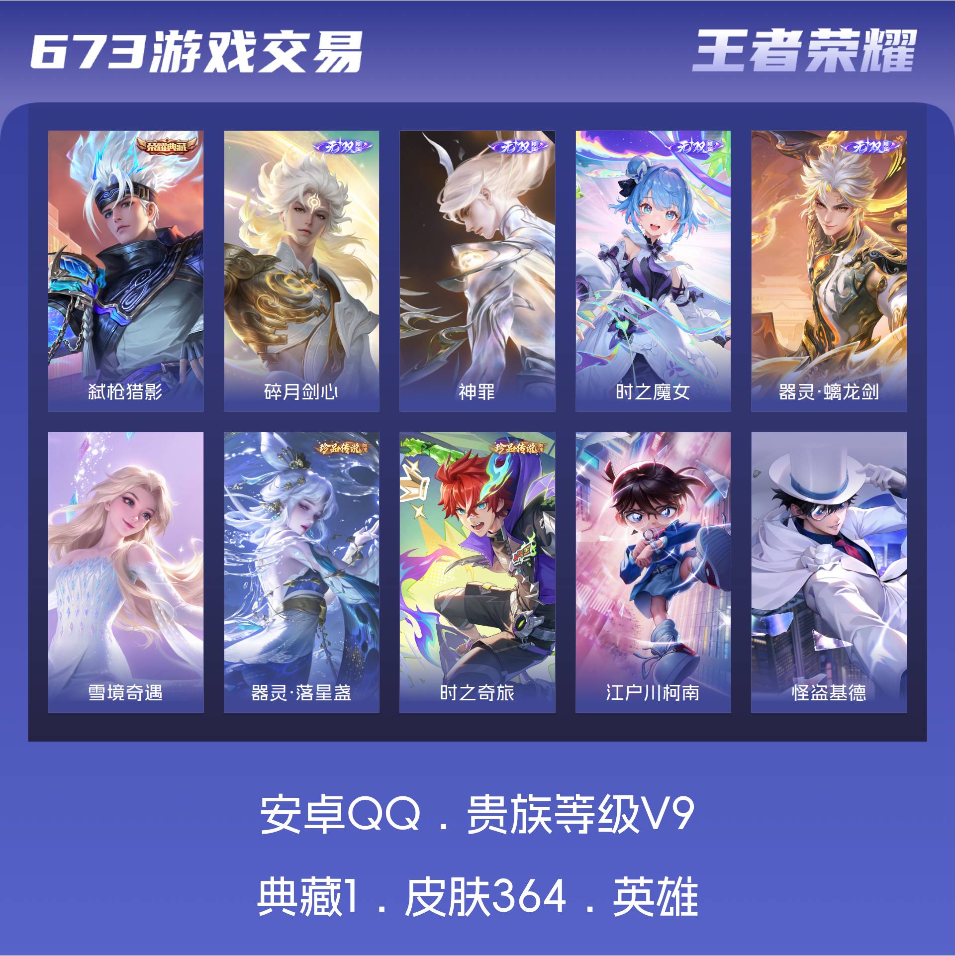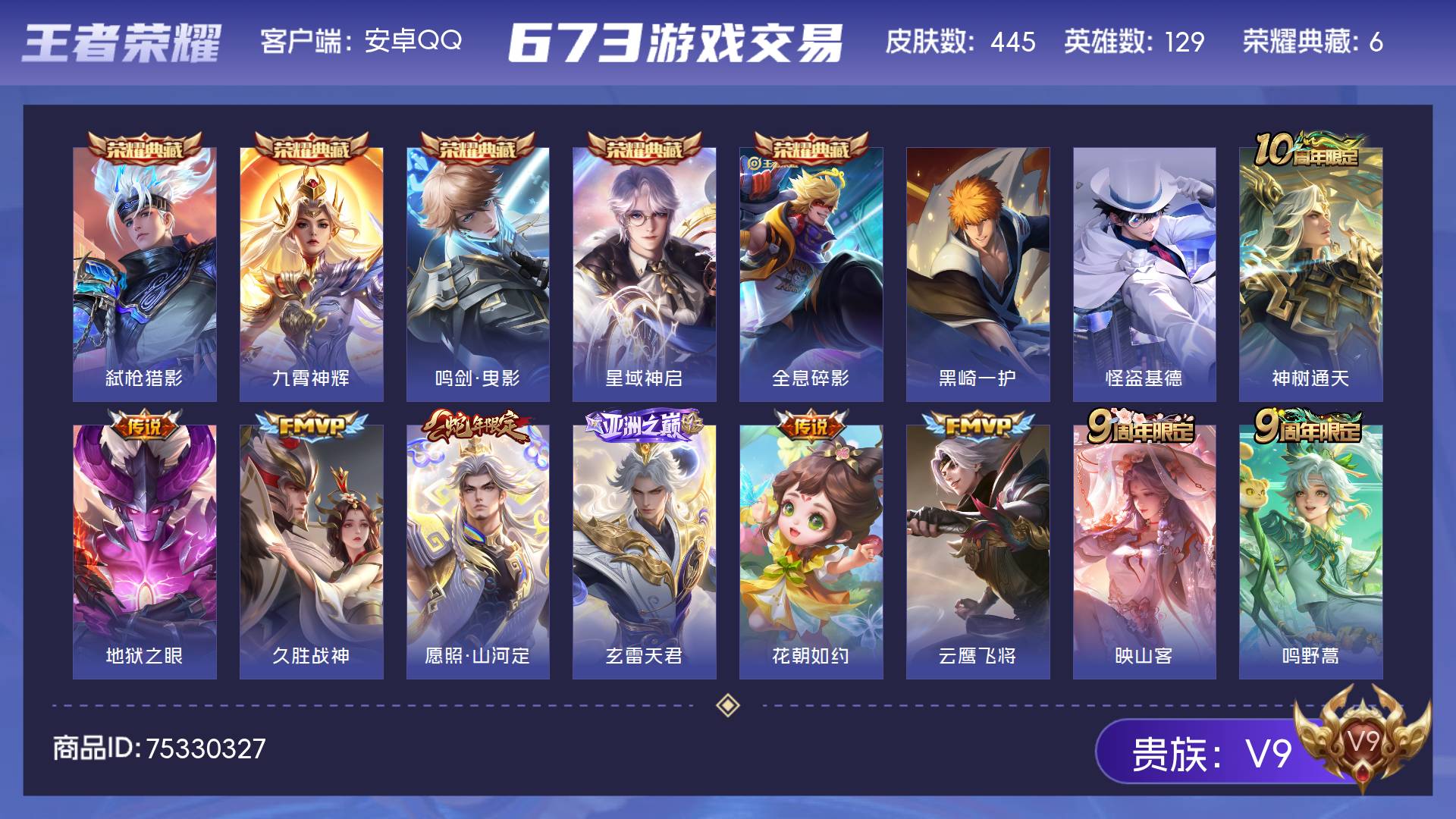 V9 皮肤445 英雄129 最强王者 荣耀典藏6 珍品传说2 传说25 其他皮肤419
