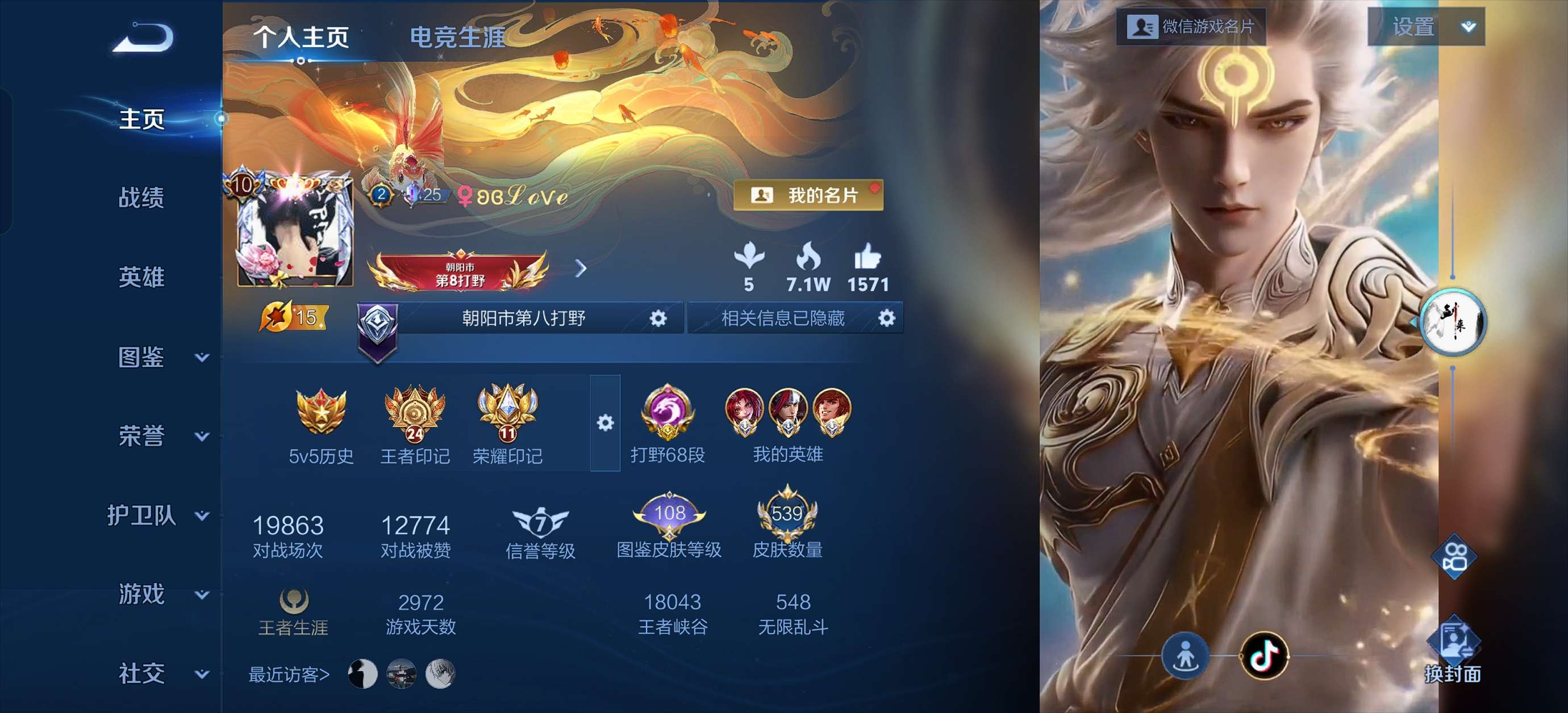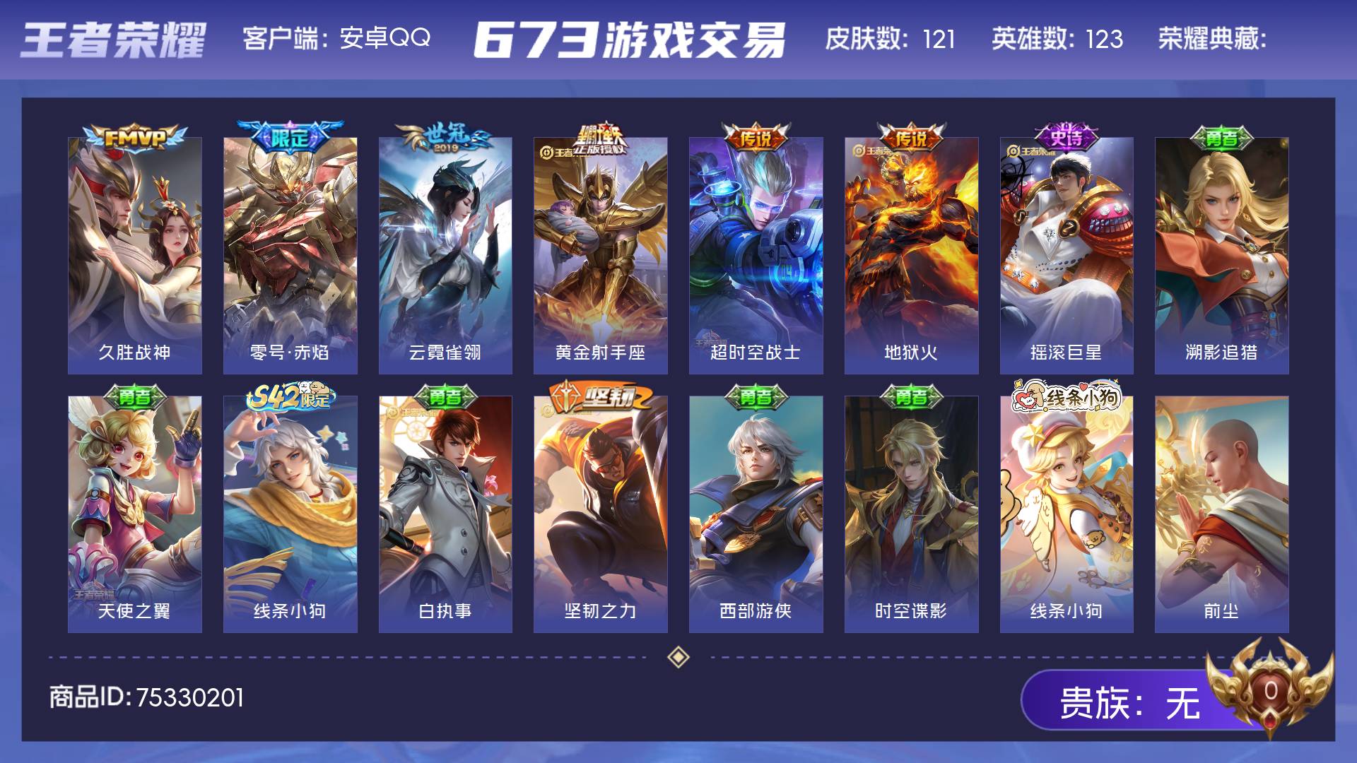 皮肤121 英雄123 至尊星耀 传说6 其他皮肤119