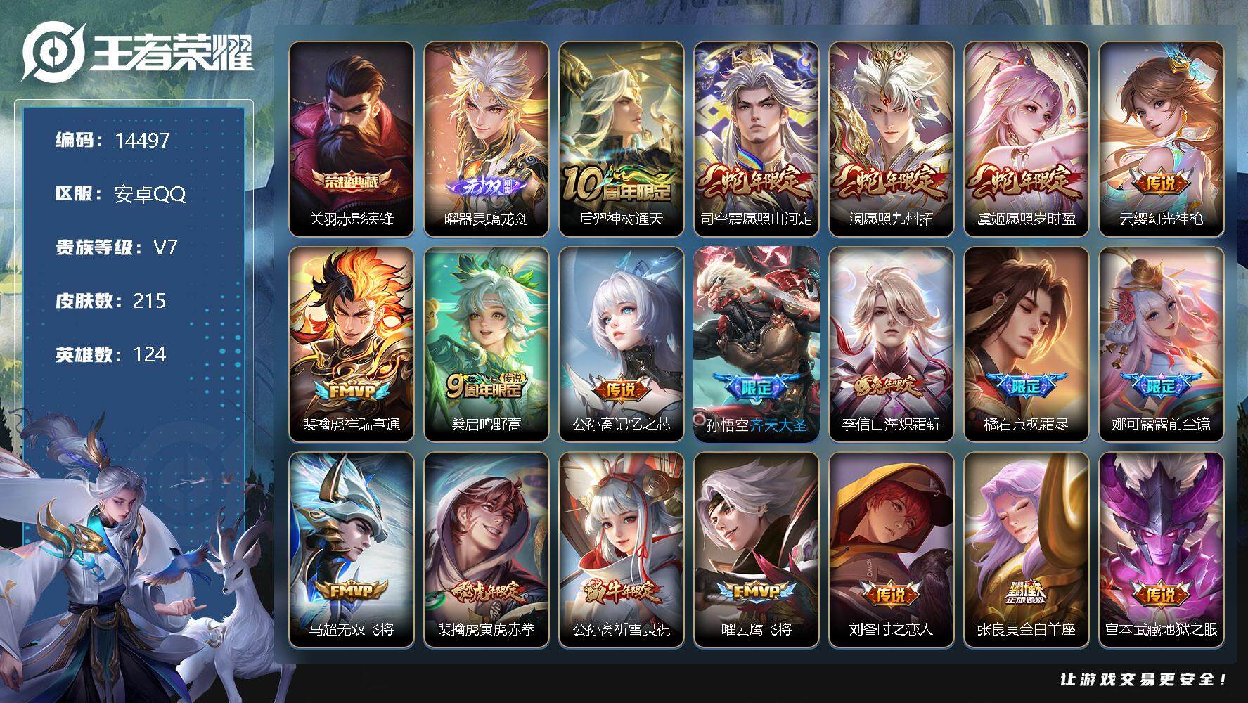 王者荣耀【安卓QQ】可二次-贵7-124英雄-166皮肤-1典藏-10传说
