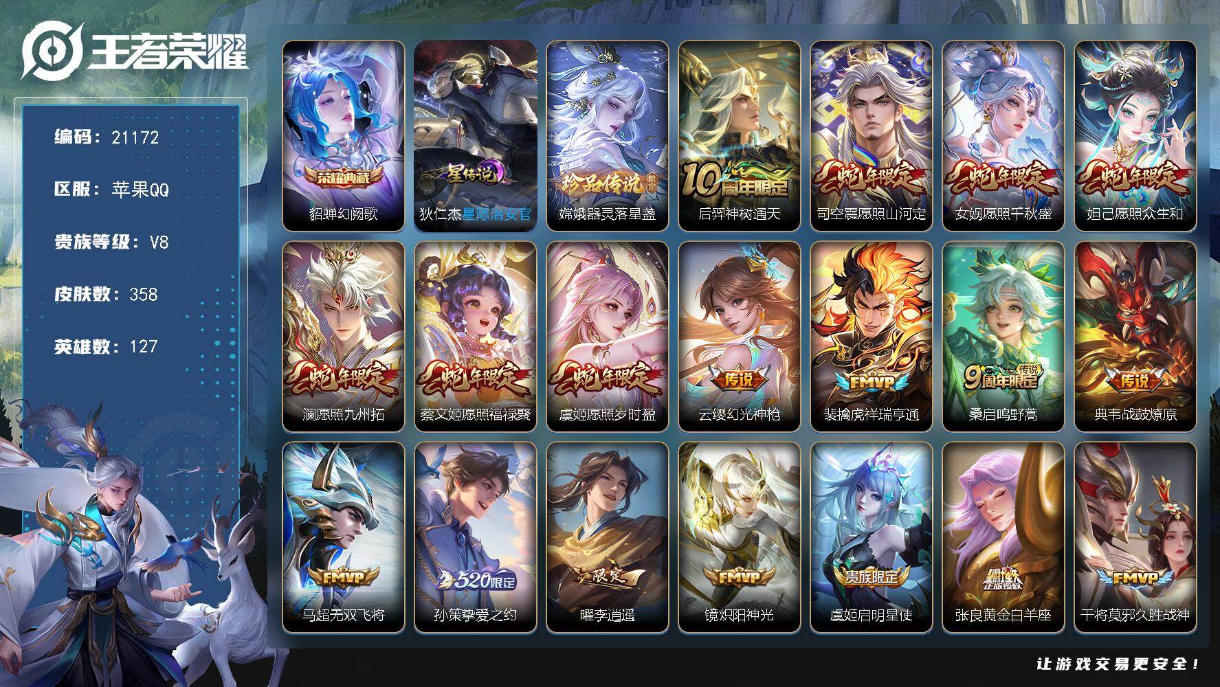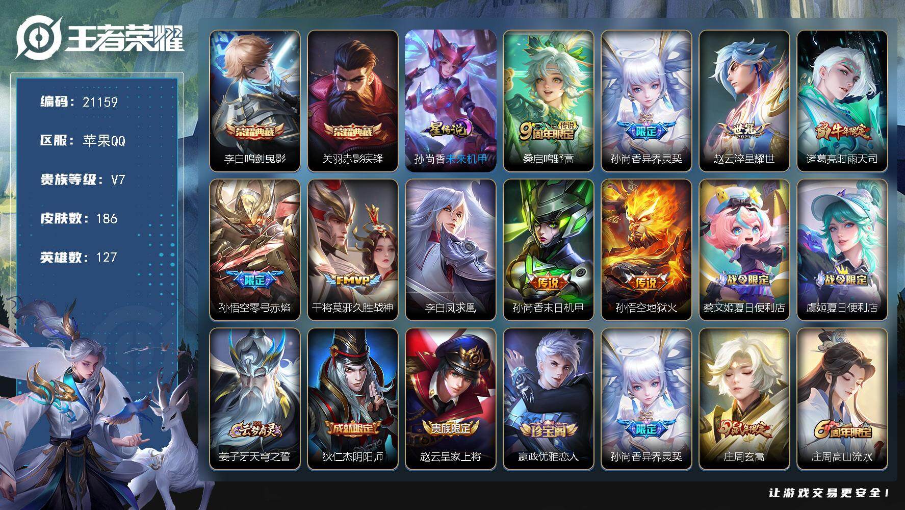 可换绑【店长推荐特价号 梅西 貂蝉典藏 嫦娥珍品 蛇年全套 白虎志 李逍遥 凤
