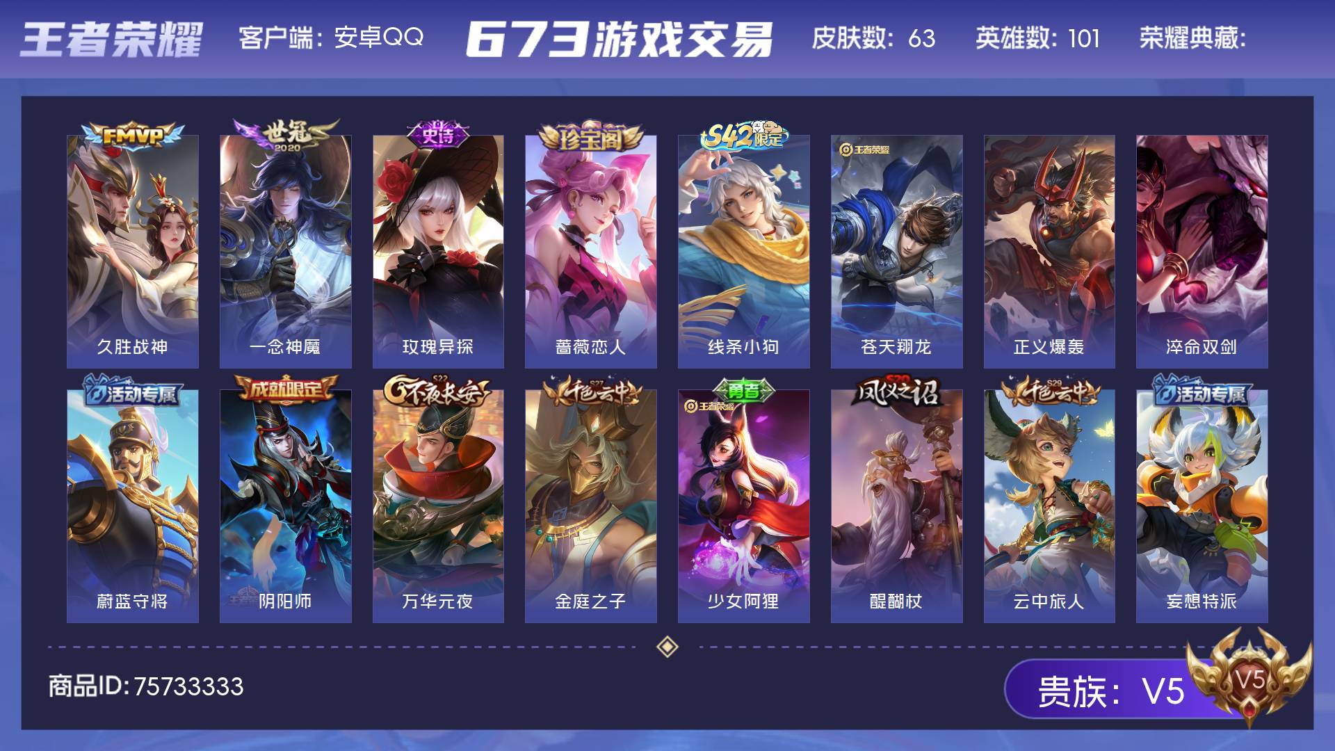 V5 皮肤63 英雄101 永恒钻石 传说2 其他皮肤66