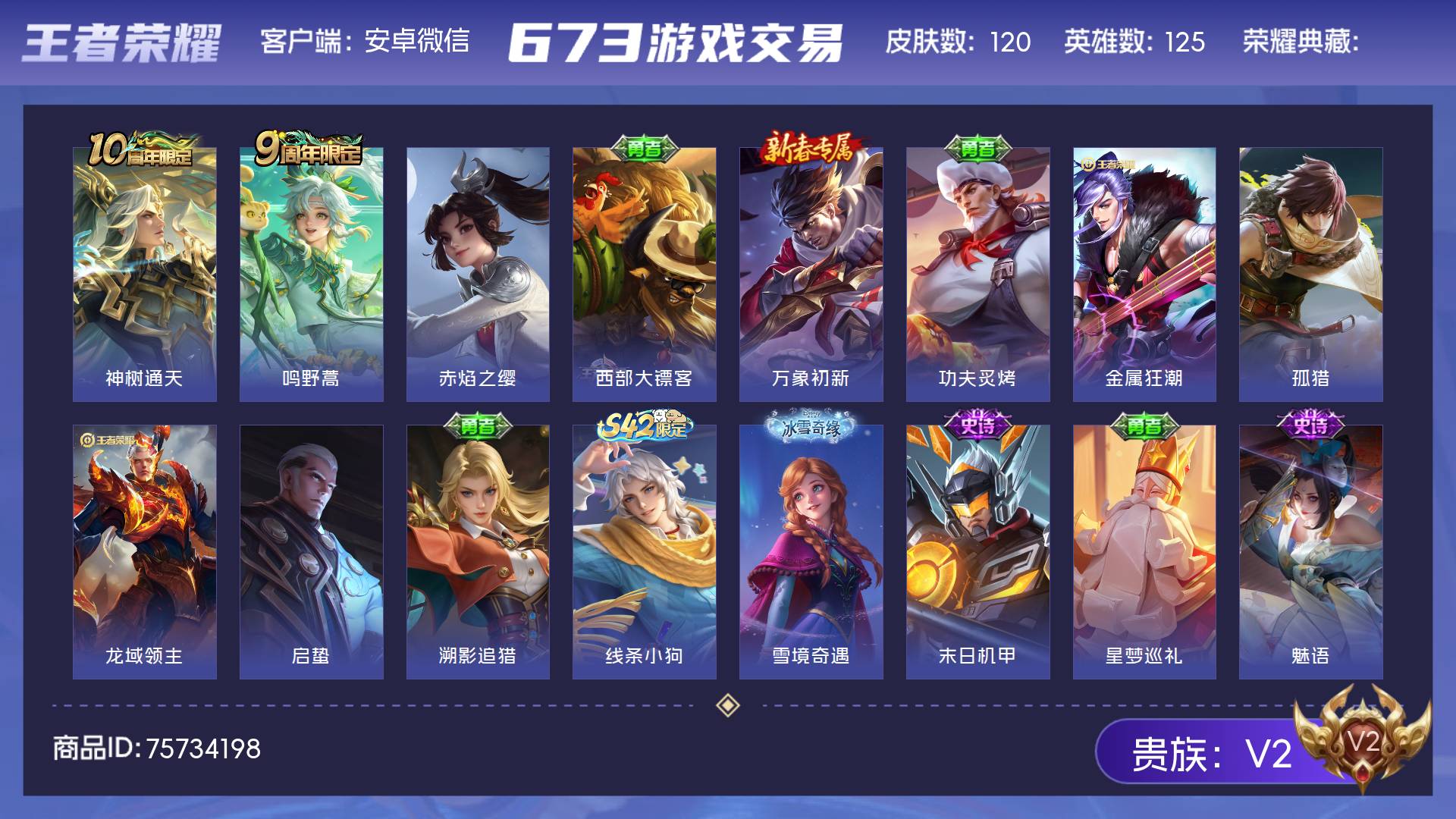 V2 皮肤120 英雄125 永恒钻石 传说2 其他皮肤123
