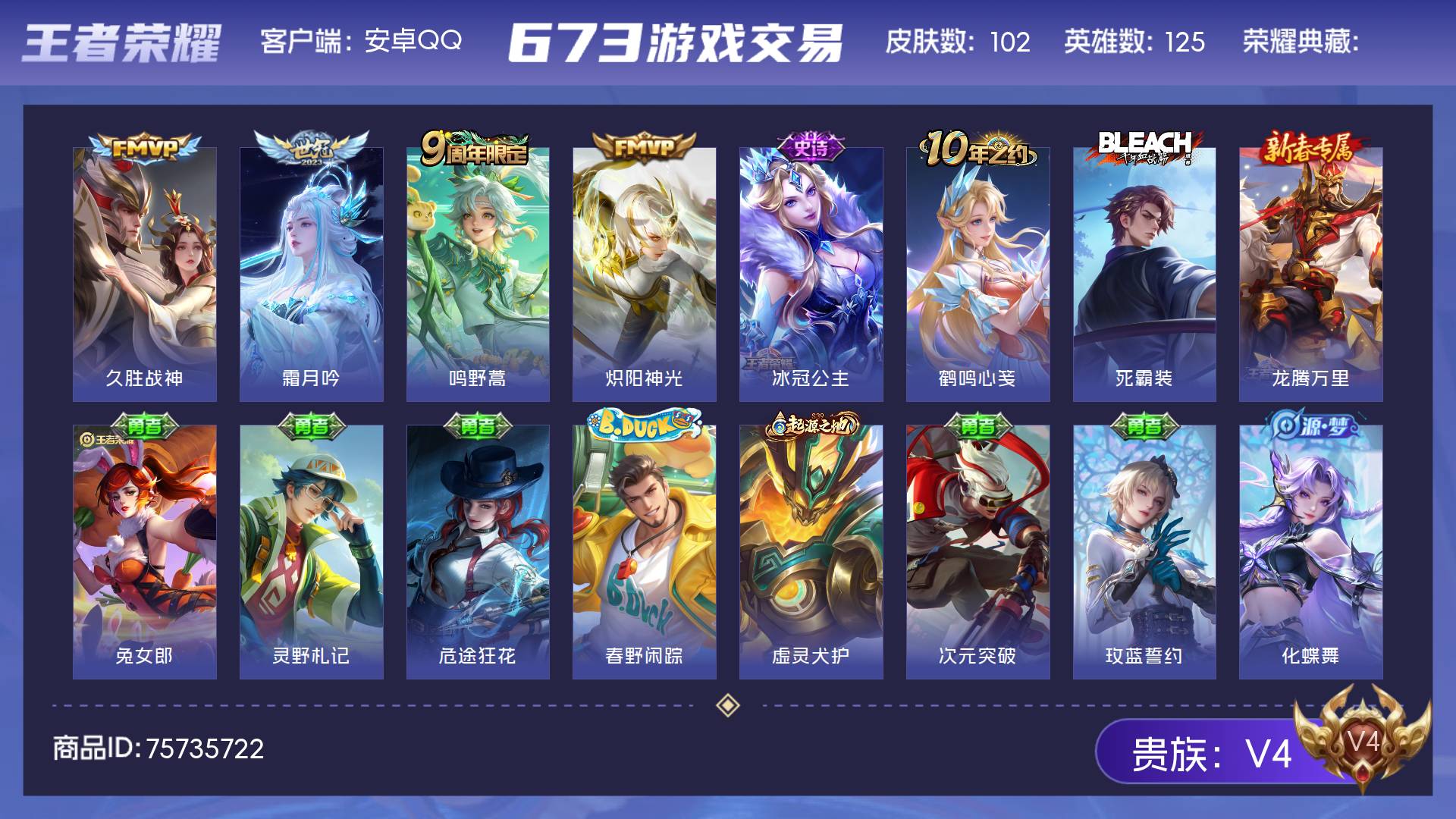 V4 皮肤102 英雄125 荣耀黄金 传说4 其他皮肤104