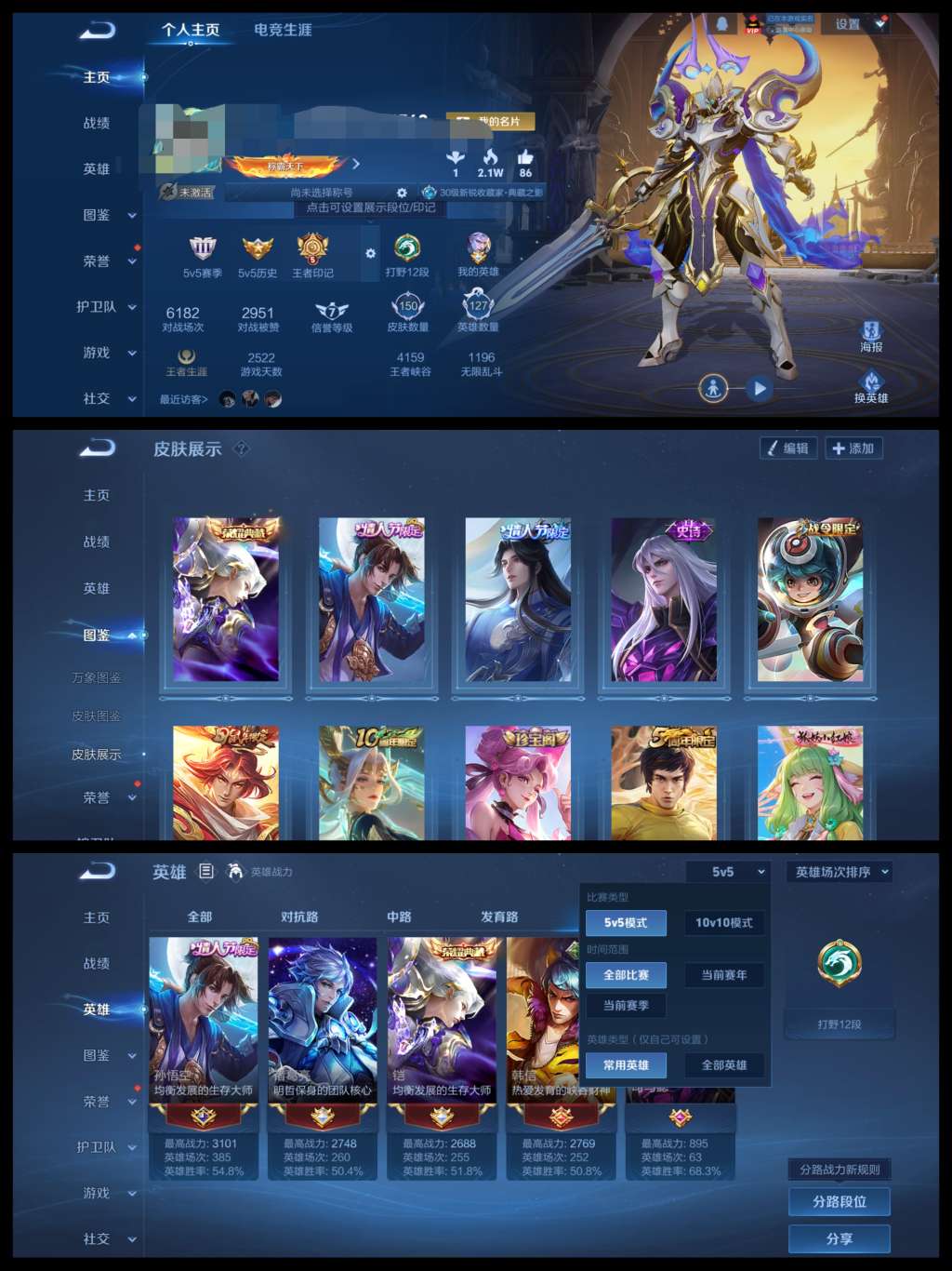 V6 皮肤127 英雄118 尊贵铂金 星传说1 传说4 其他皮肤129