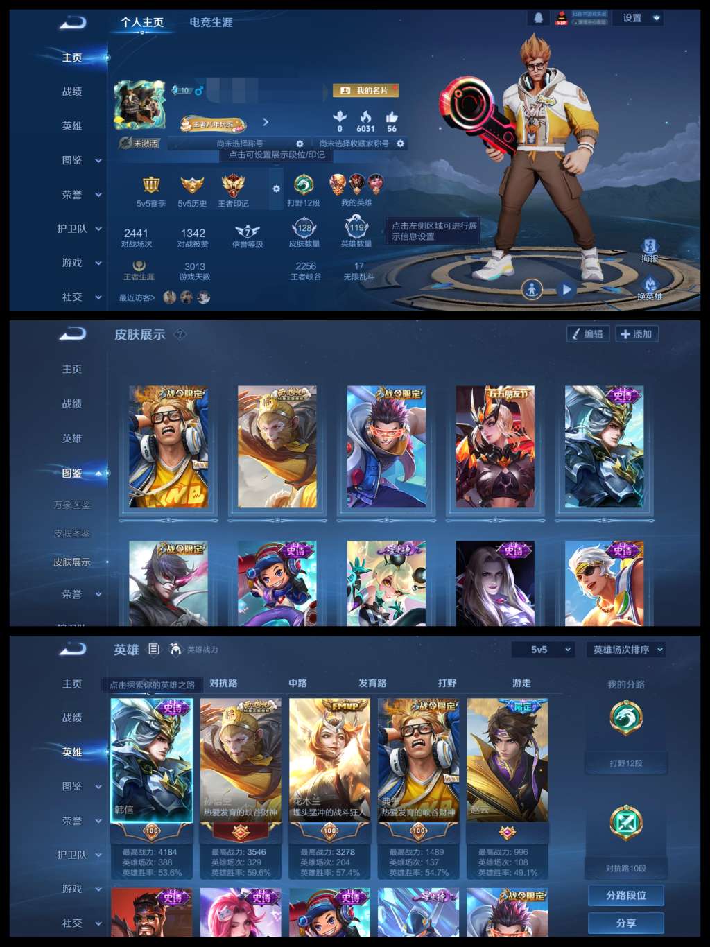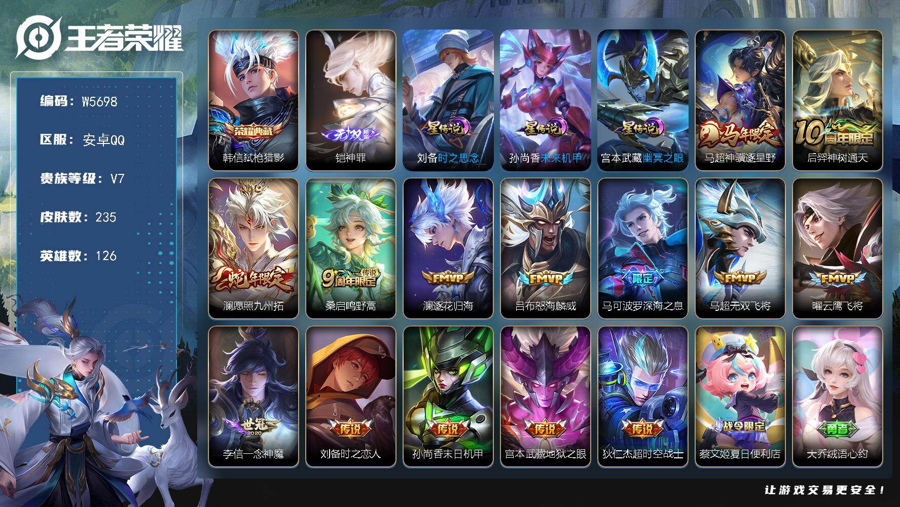 【W5698】极品5.4k场次打野号(热门皮肤)弑枪猎影.神罪.逐花归海,至尊