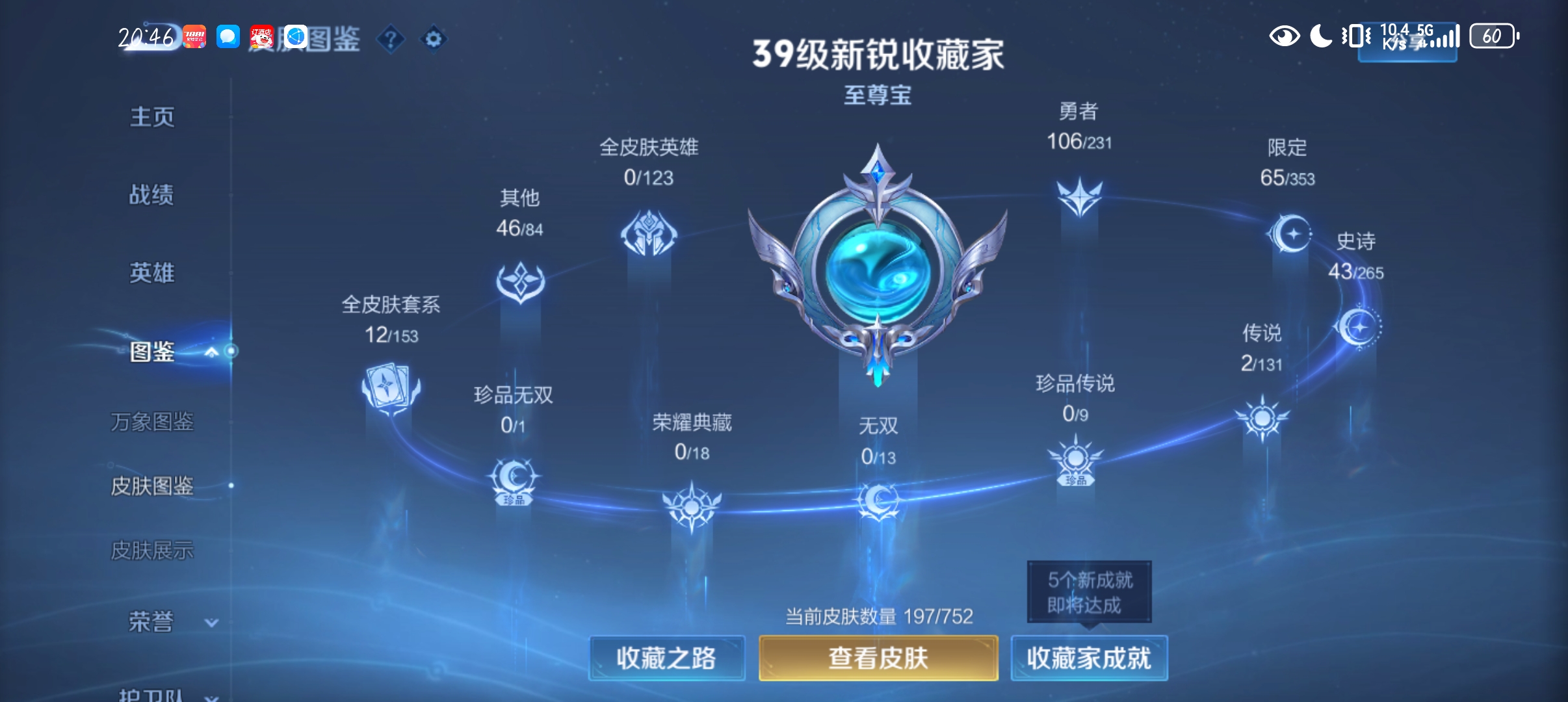 V5 皮肤62 英雄77 至圣王者 无双皮肤1 传说2 其他皮肤19