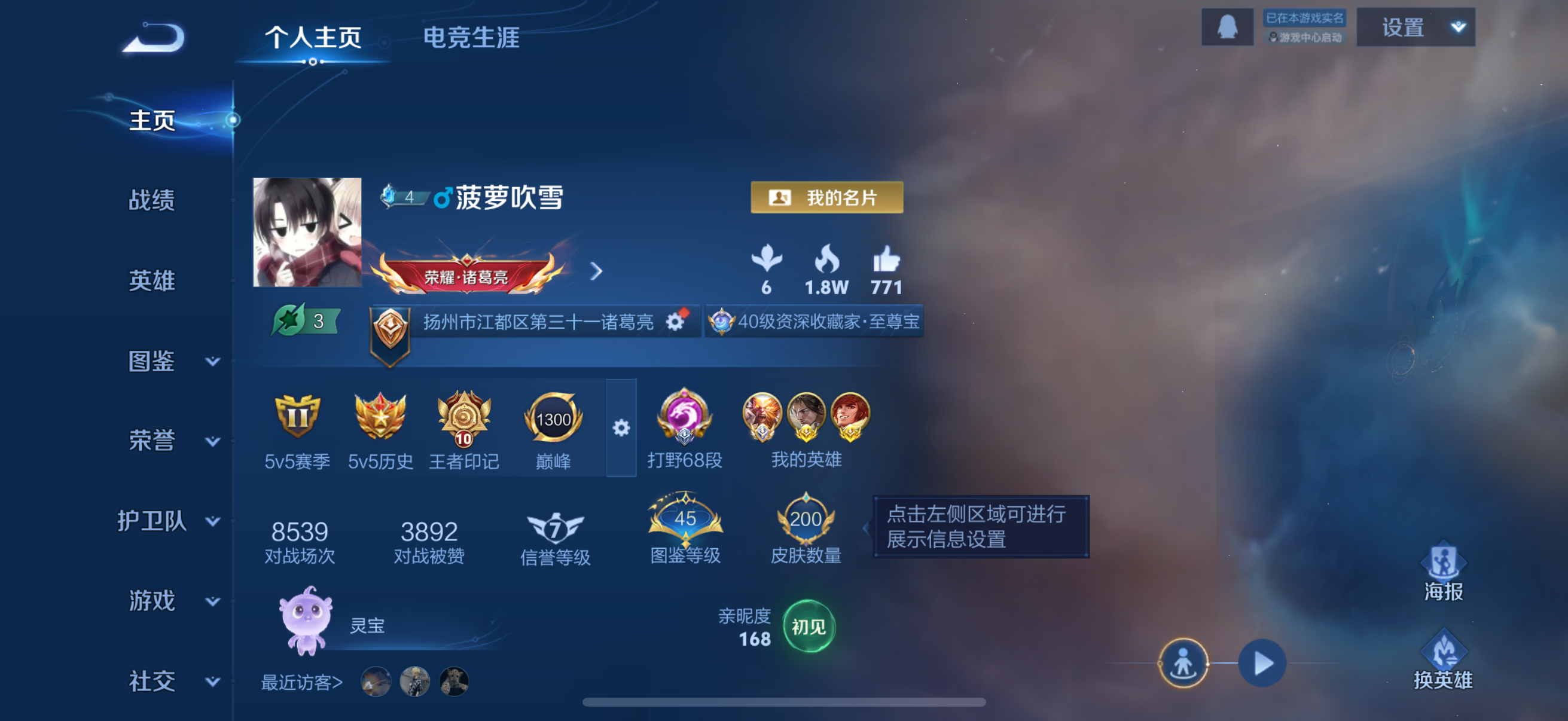 V8 1典藏 1珍品传说 5传说 126英雄 218皮肤 可修改实名