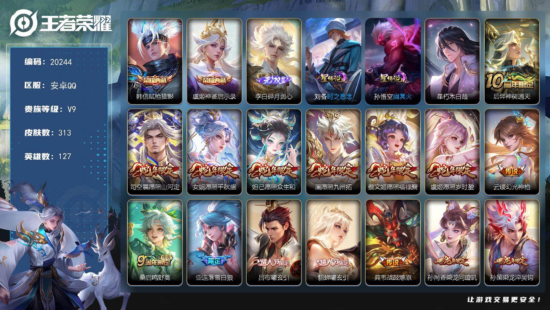V7 1典藏 9传说 127英雄 276皮肤 可修改实名 【英雄全皮】敖隐全皮