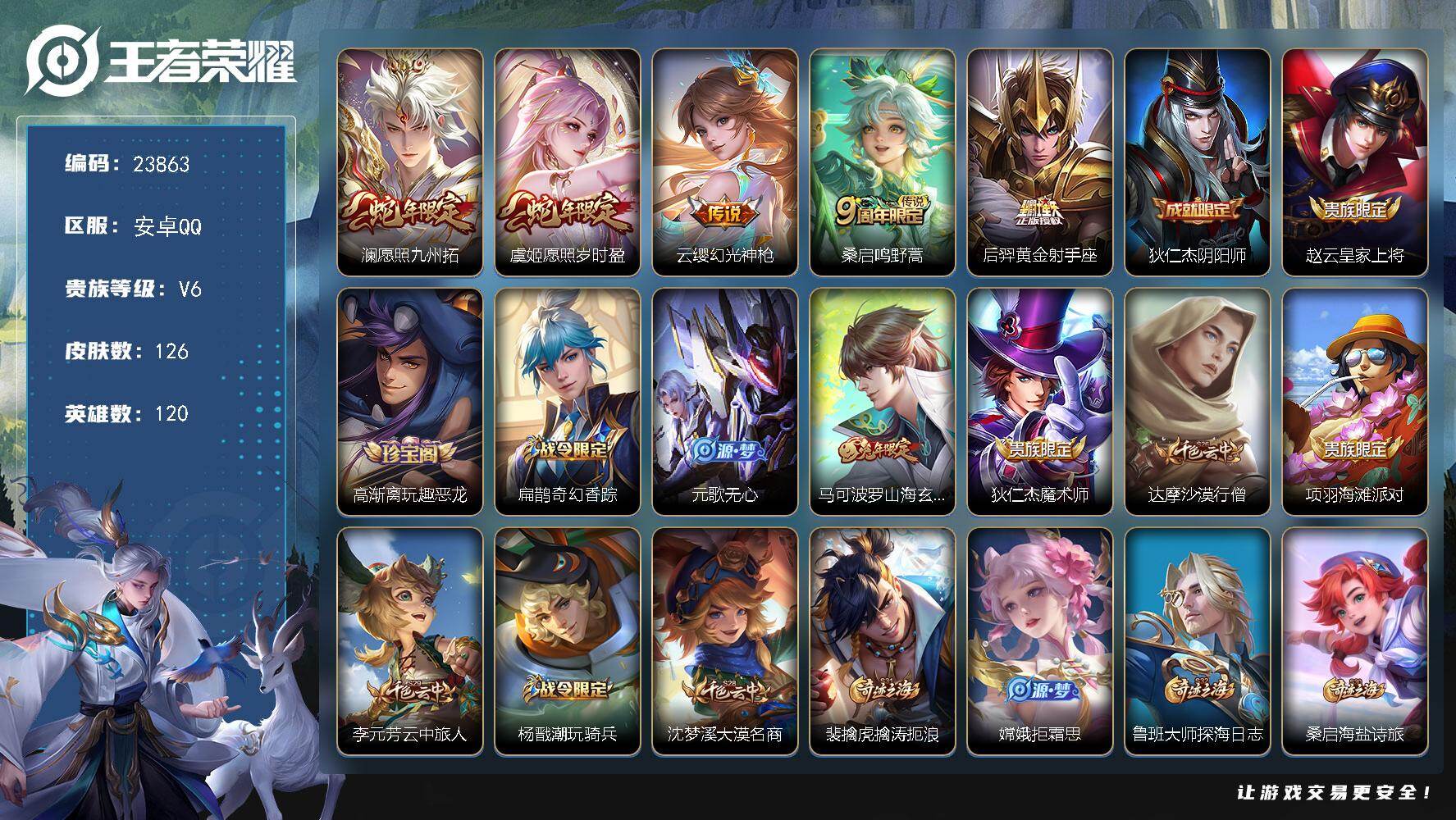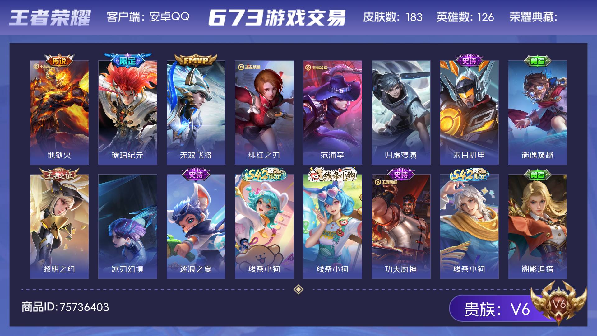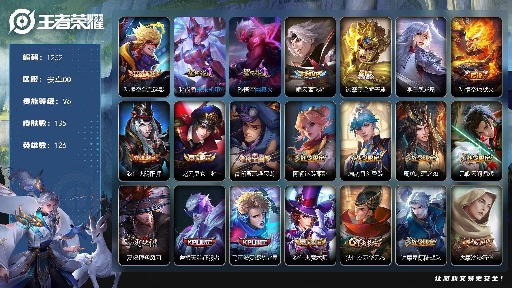 安卓Q-V6-126英雄-135皮肤-1典藏-2星传说皮肤-4传说-35史诗