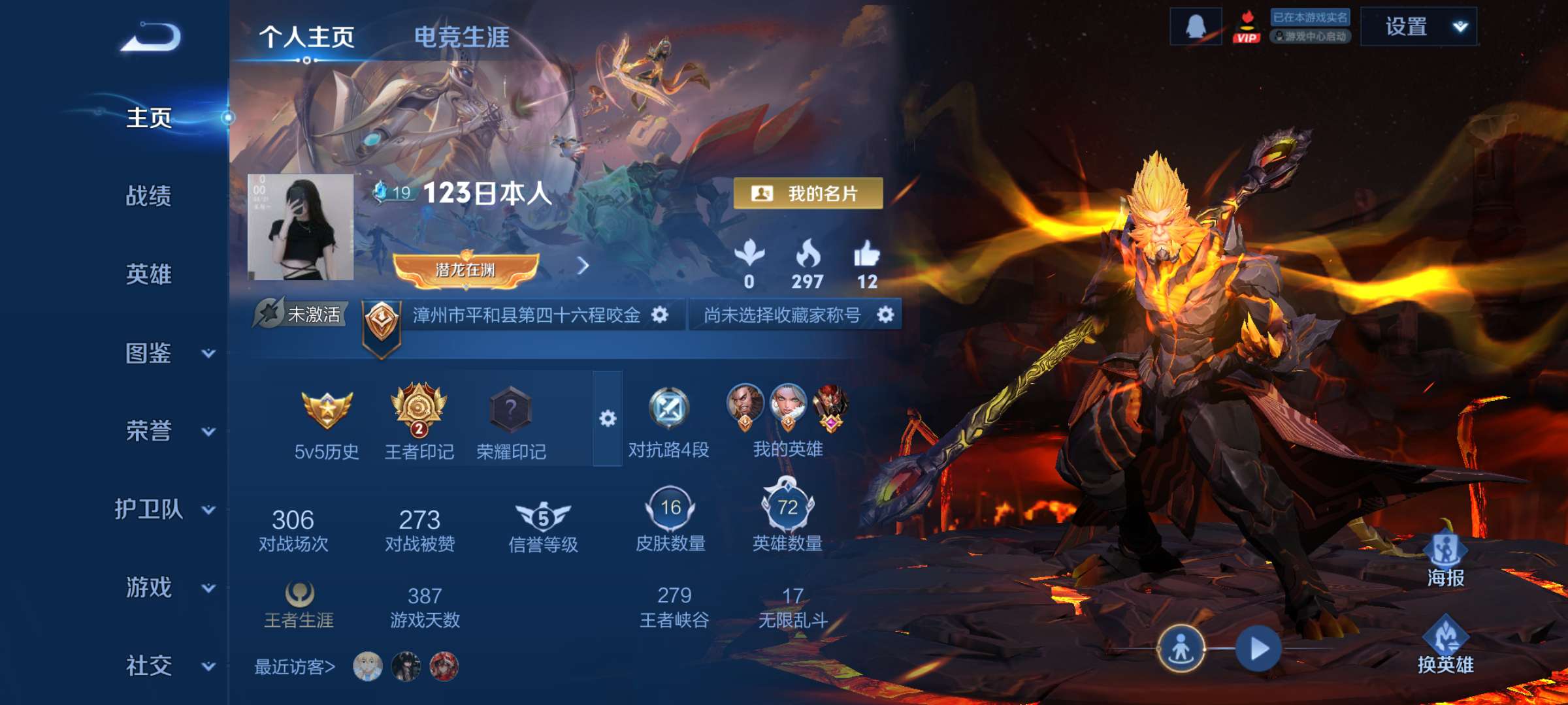 安卓Q-V7-尊贵铂金IV段位-126英雄-241皮肤-1珍品传说-1星传说-