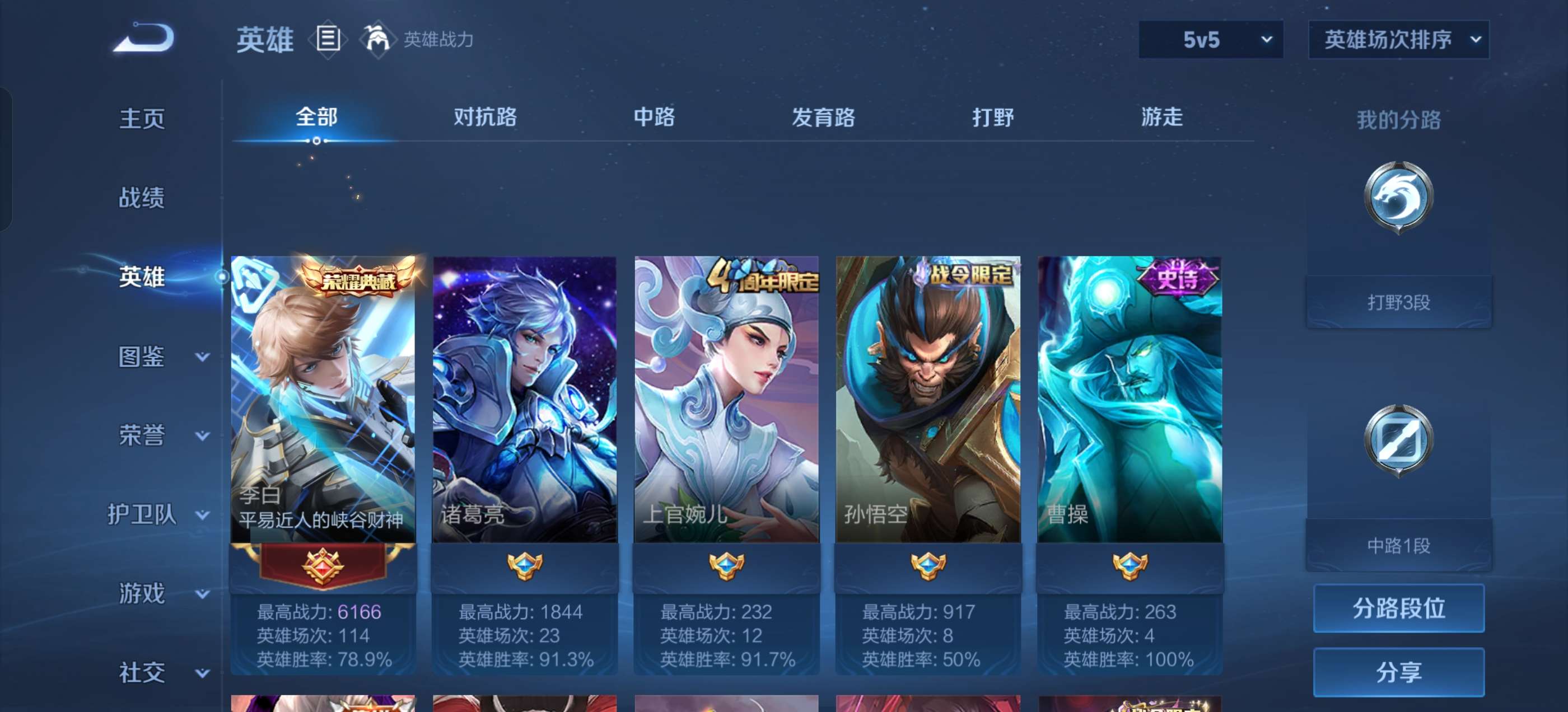 V5 皮肤136 英雄110 至尊星耀 传说9 其他皮肤132
