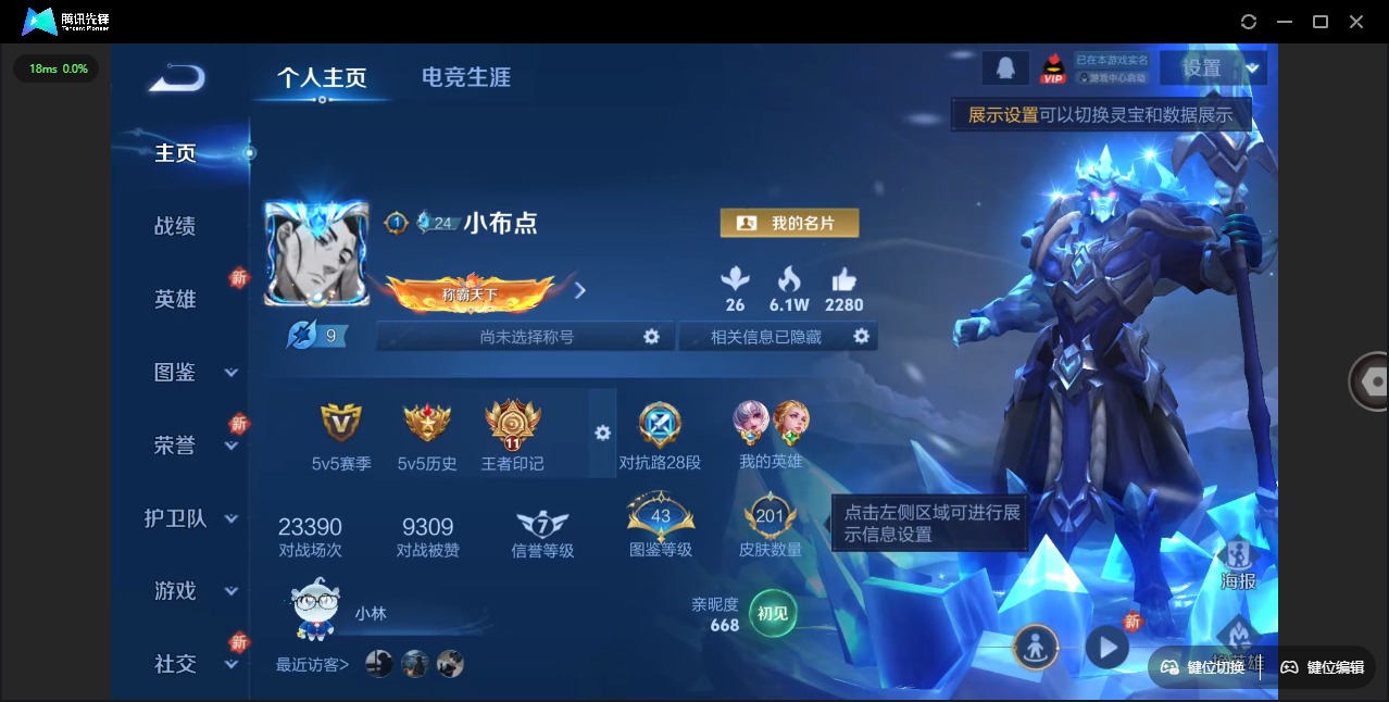 V7 1典藏 6传说 123英雄 118皮肤 可修改实名 有社交场景限制