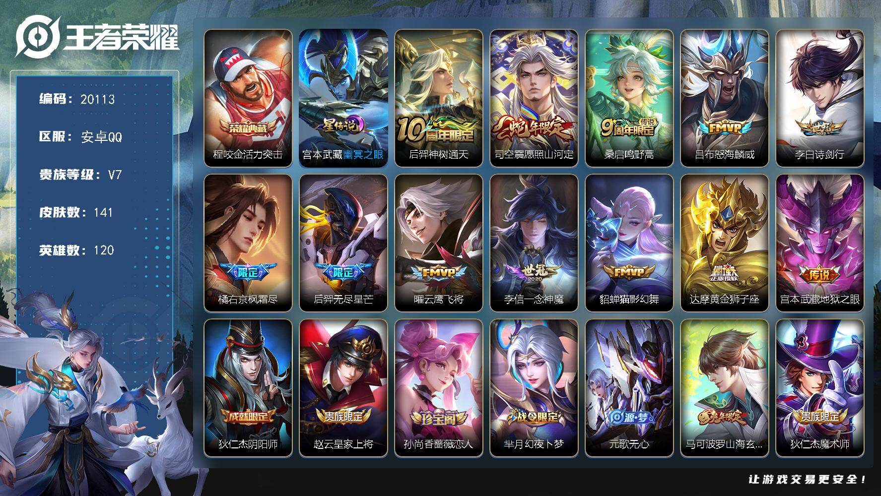 V7 1典藏 9传说 125英雄 156皮肤 可修改实名 【英雄全皮】:影全皮