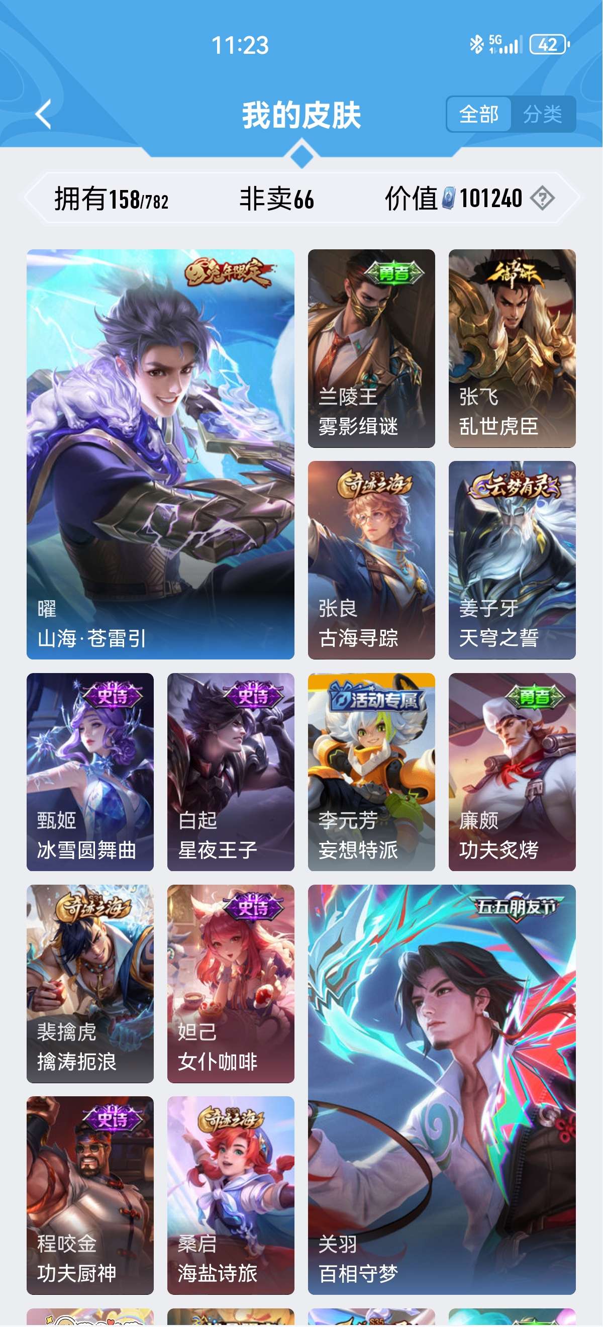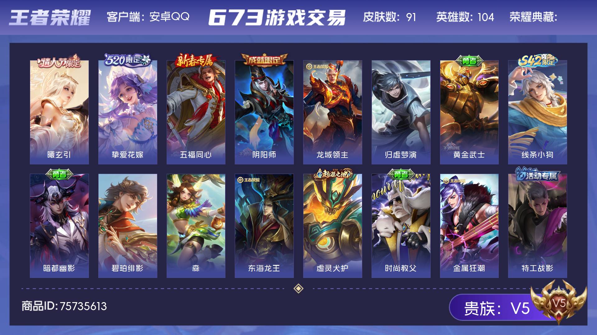 V5 皮肤91 英雄104 至尊星耀 传说2 其他皮肤93