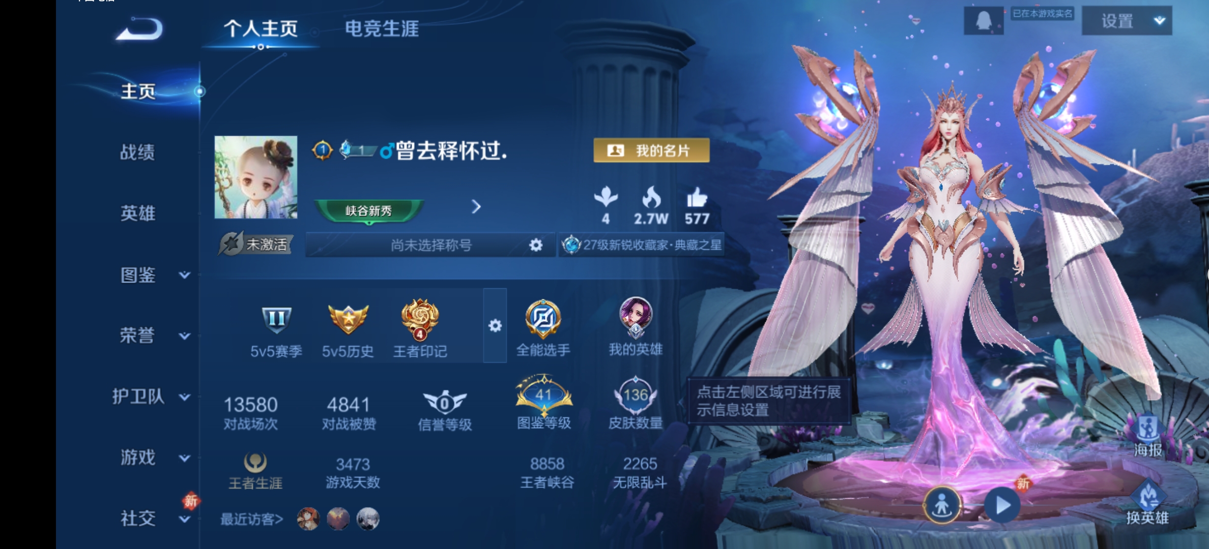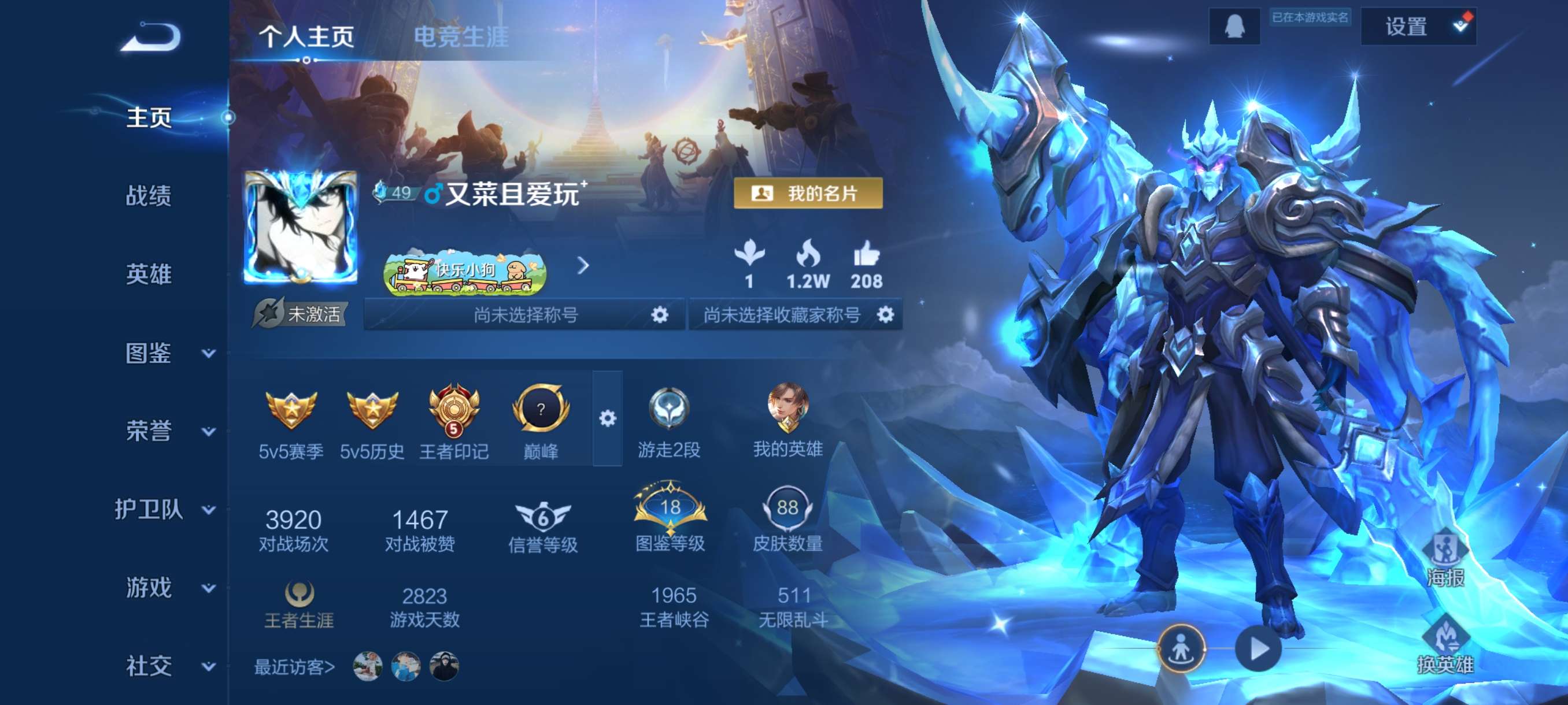 (氪金皮肤数据号)(巅峰游走全国一万强)主页好看历史段位高1